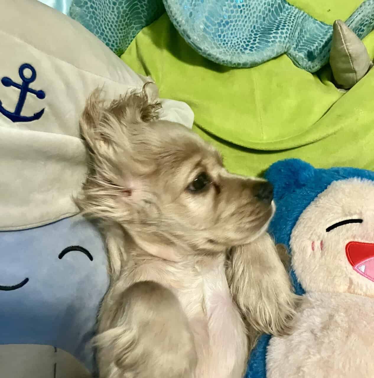This is a 5 month old English cocker spaniel. He is a purebred English cocker spaniel. He is currently in the process of being potty trained, but that training will have to be reaffirmed in your house. He is lovable, very active, playful and loves giving kisses. He has been socialized around other dogs and people as well so he’s very adaptable, making him ready for his new home. He also has his first set of shots.