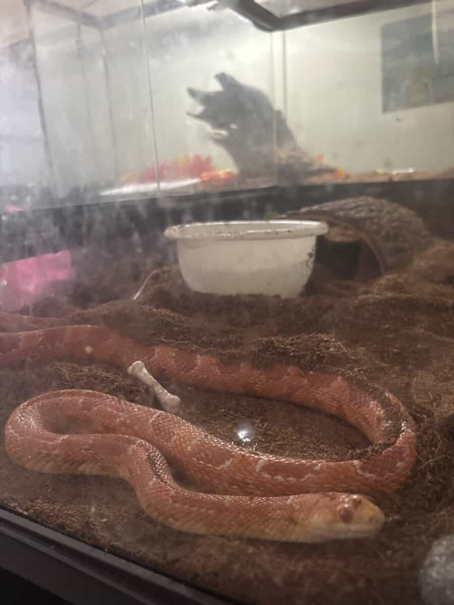 She is a 2 year old blood red albino corn time for her to find a great loving reptile home she need a big tank I have her in a 40 breeder reptile tank ( tank not included) feeds on small rats an adult mice is her favorite