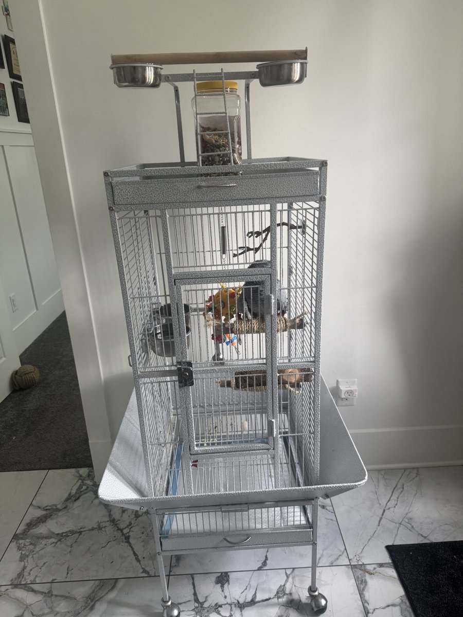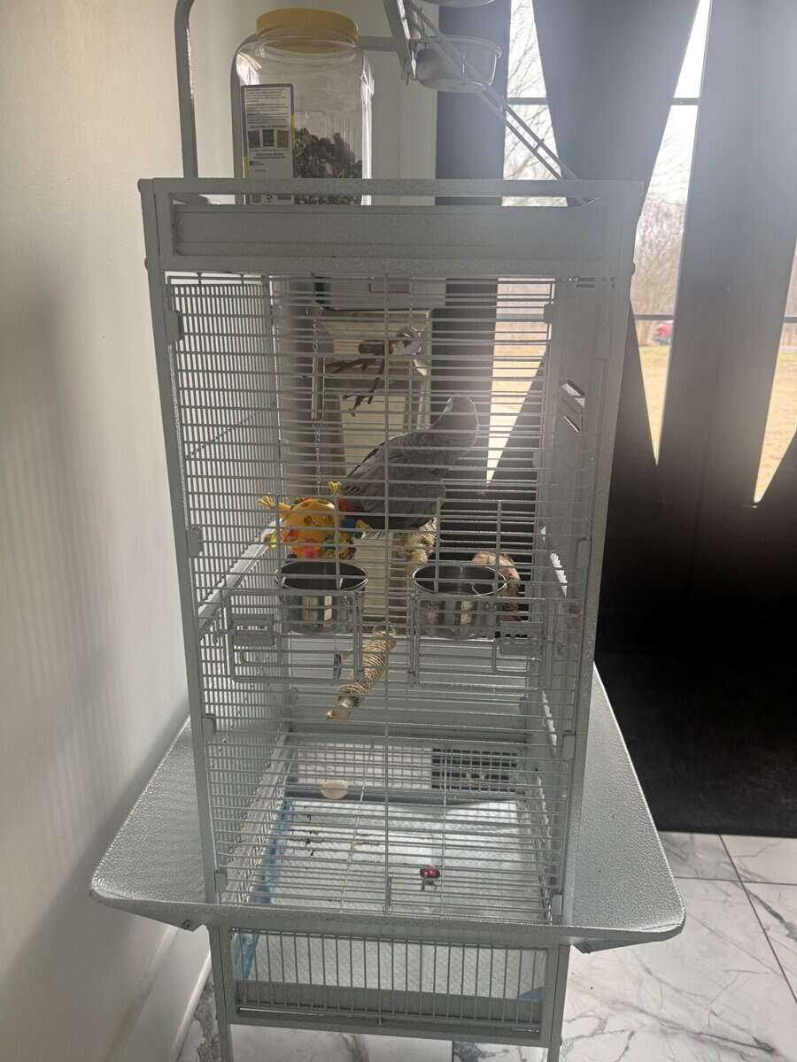 This is an African Grey bird 15 years old. He speaks a little. Needs training and likes attention.