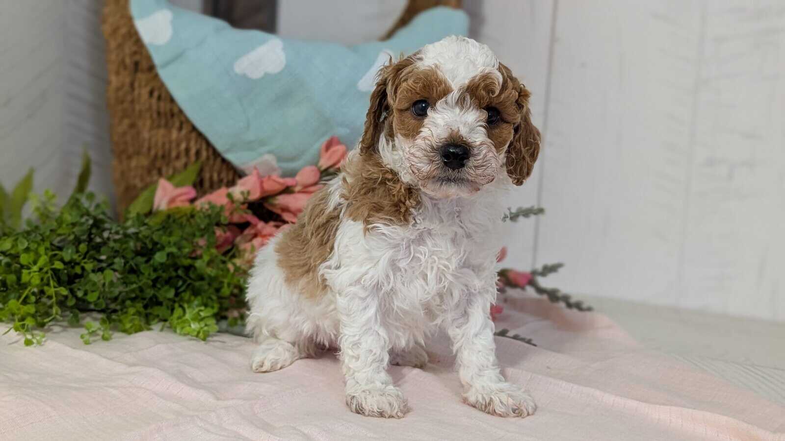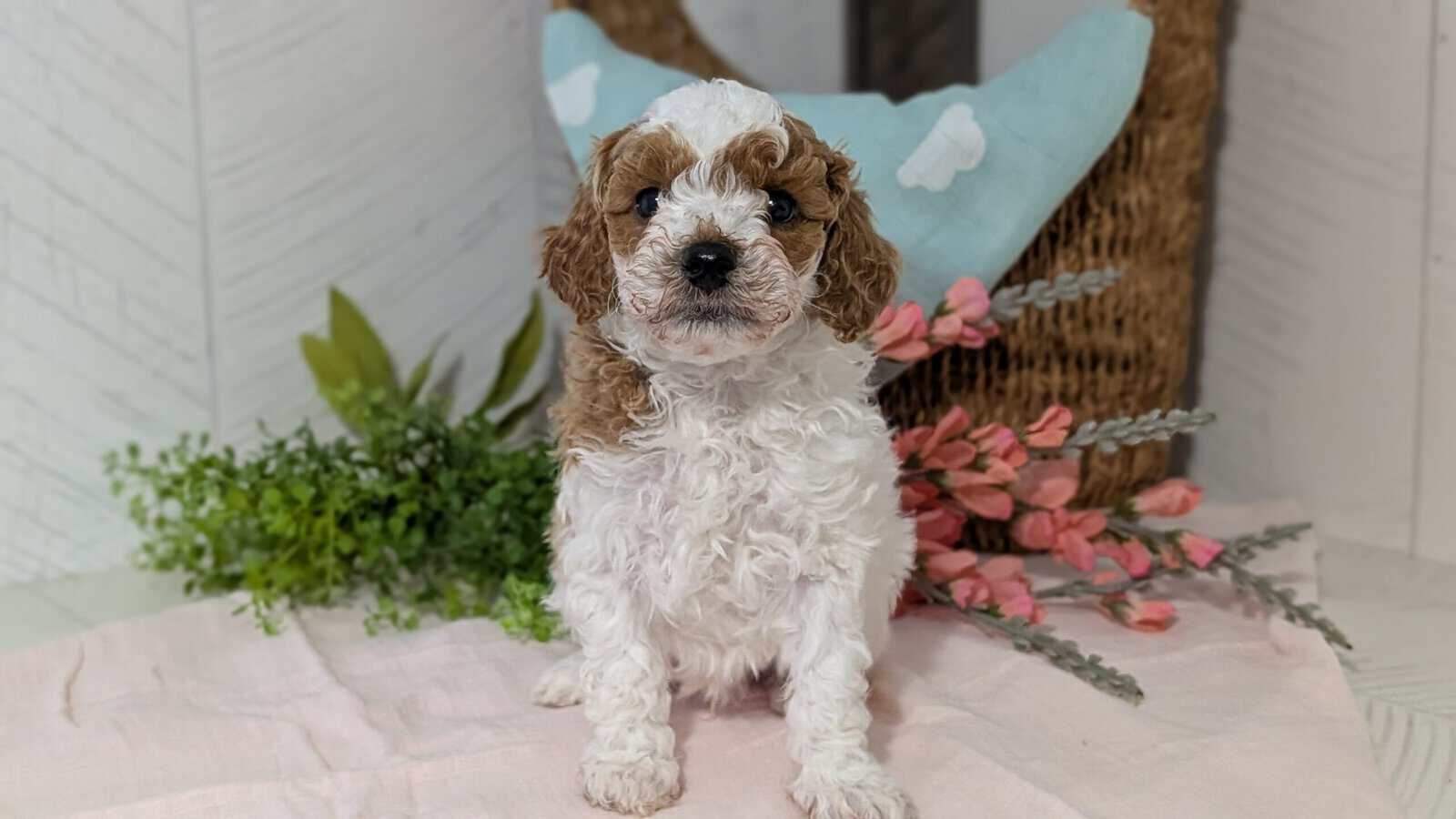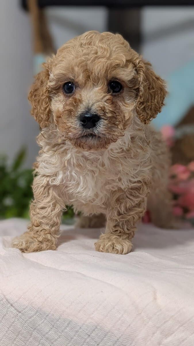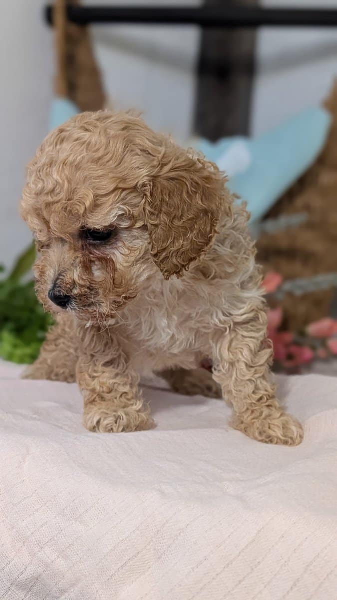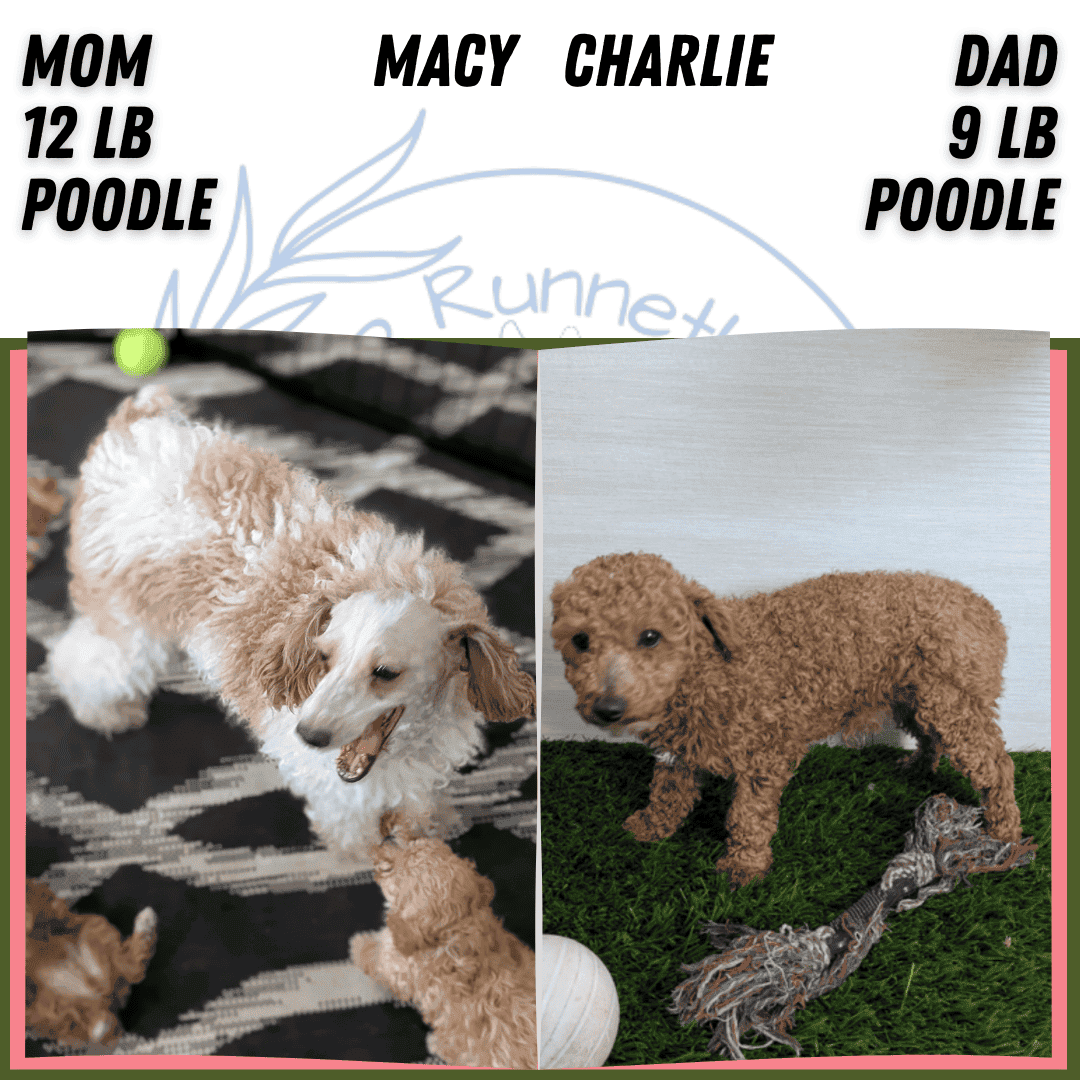 Mom (Macy) is a beautiful and sweet red/white Poodle weighing 12 pounds. Dad (Charlie) is a handsome red Poodle weighing 9 pounds. Both are well mannered and great with kids. Pups from their previous litter have kept their color very well (see photos). Genetic testing is being done on both Macy and Charlie currently, results will be posted when received.