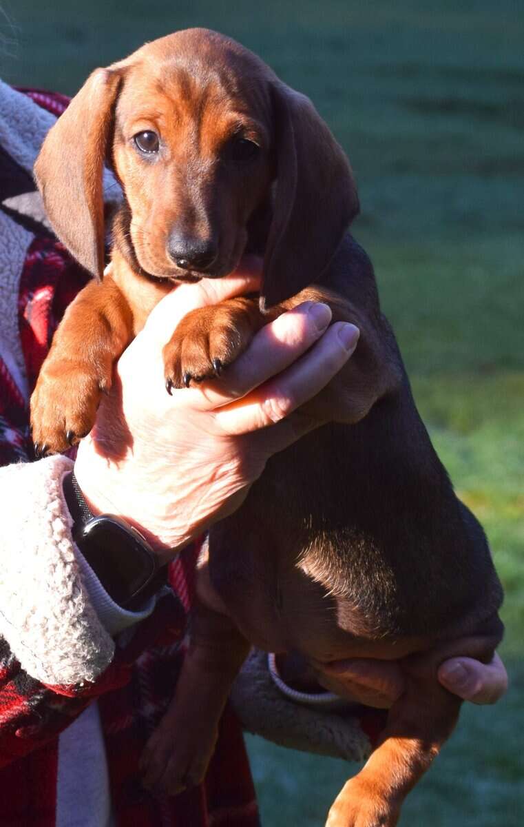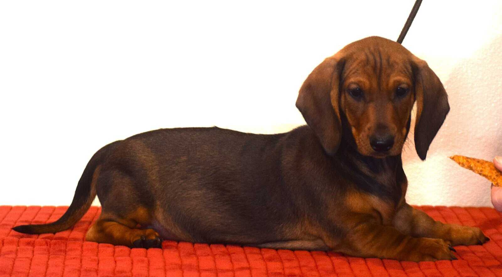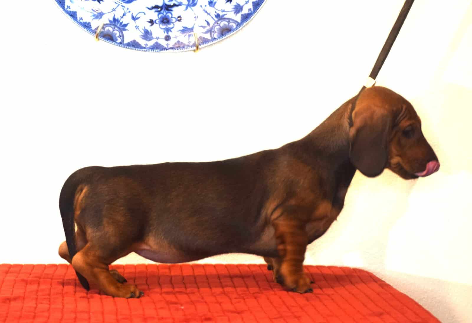 AKC Smooth (standard) Dachshunds come from a long line of top show dogs with lineage from US and European, Sire is Champion Brownwood Edison SS Dam is High standards champion my Corazon Cora. There's show lineage is 80 years long. Can be for show Prospect or Pet. Mom weights 28 pounds and dad weights 29 pounds These are true standards not mini's. I have two females available in one All three are reds. For approved homes