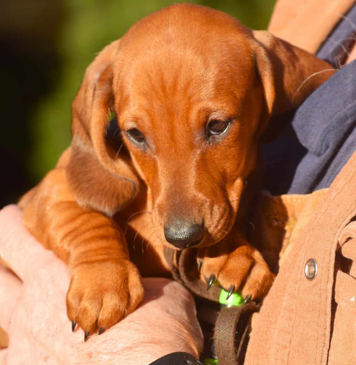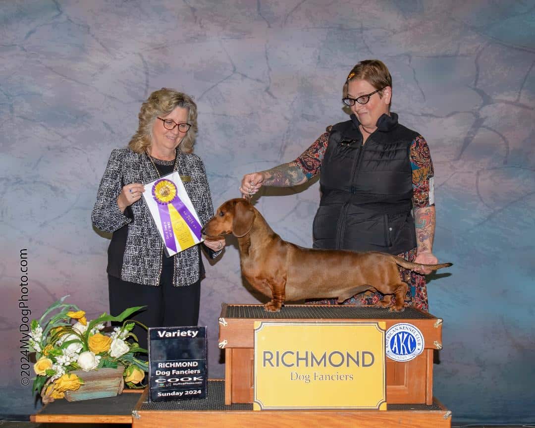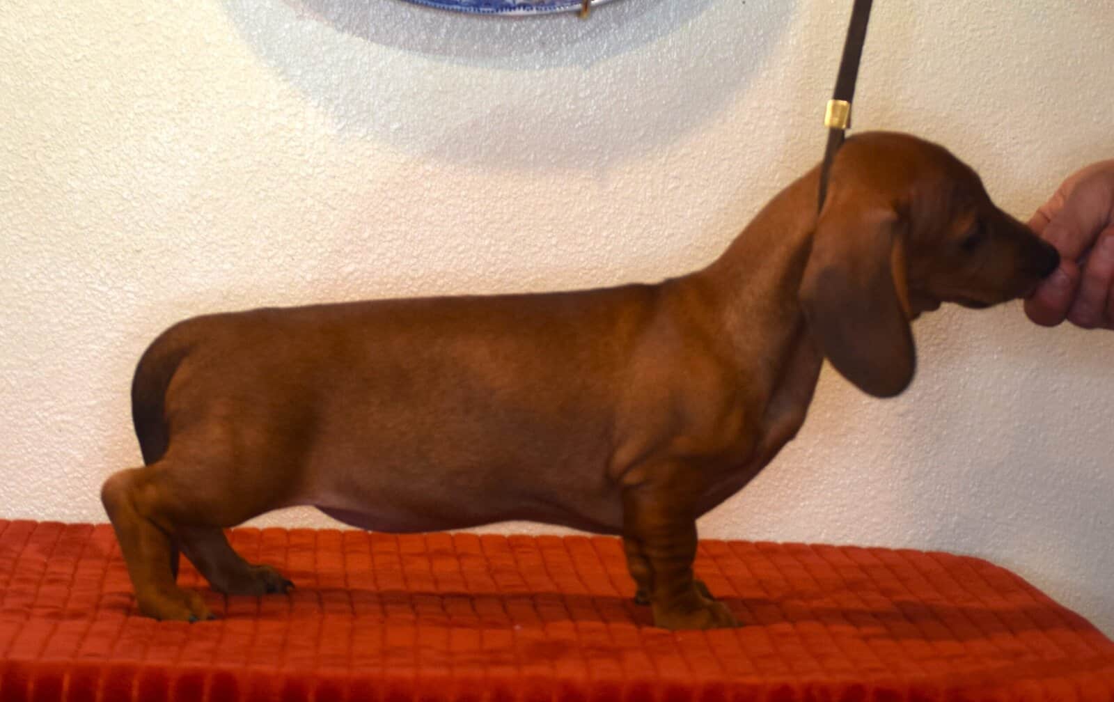AKC Smooth (standard) Dachshunds come from a long line of top show dogs with lineage from US and European, Sire is Champion Brownwood Edison SS Dam is High standards champion my Corazon Cora. There's show lineage is 80 years long. Can be for show Prospect or Pet. Mom weights 28 pounds and dad weights 29 pounds These are true standards not mini's. I have two females available in one All three are reds. For approved homes