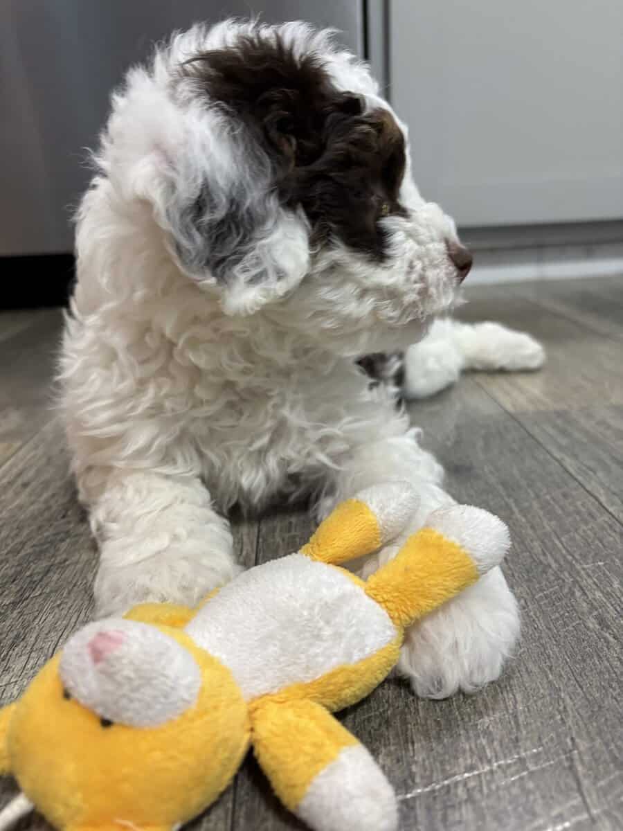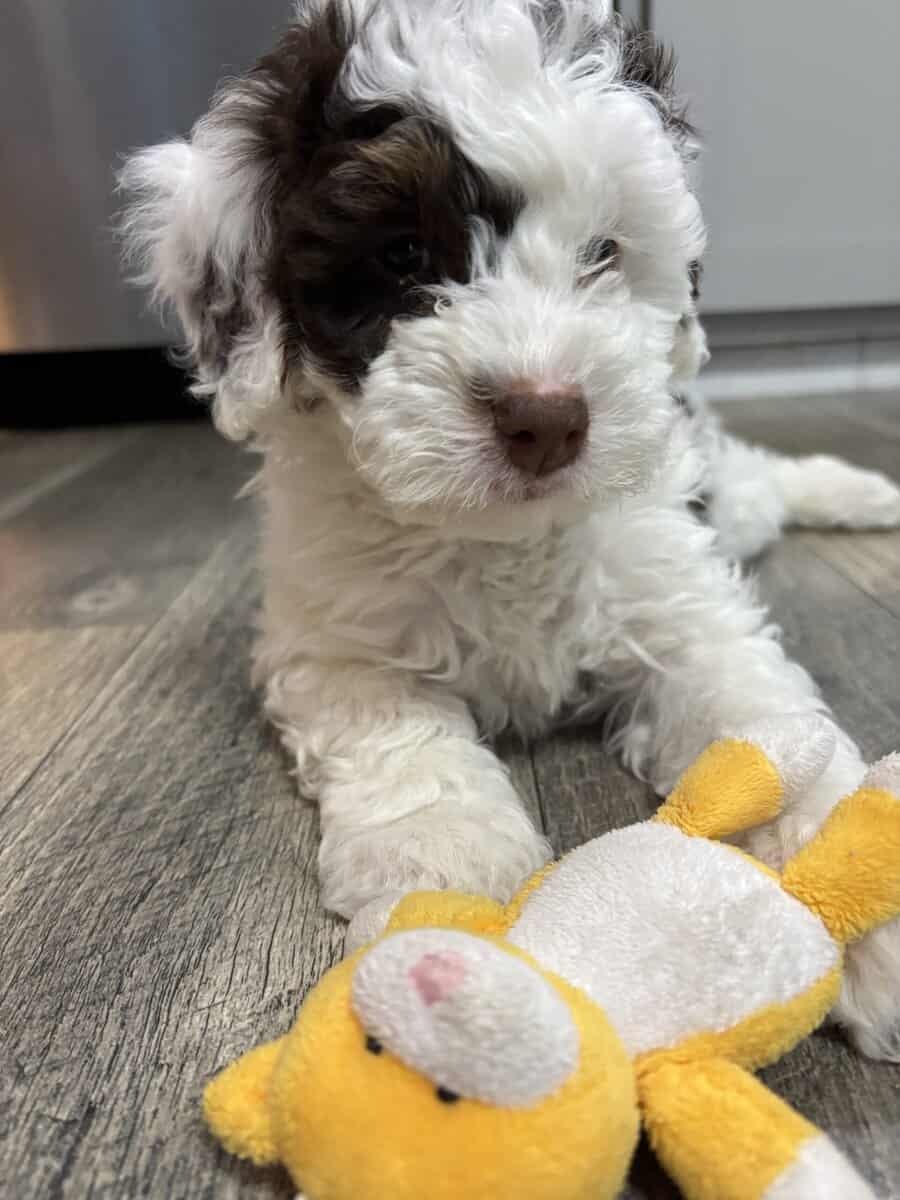 Ava is an 8 week old, brown and white F2 mini Bernadoodle. She is ready to go to her new home. Born on Nov 13, vet checked, current on vaccinations and deworming and is well socialized. She will grow to be 20-25 lbs. shipping available