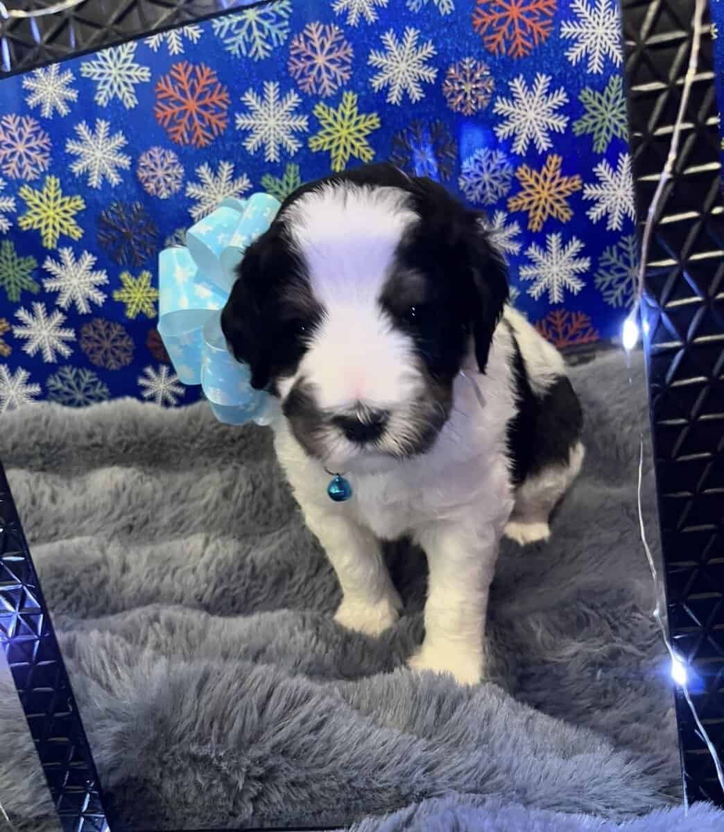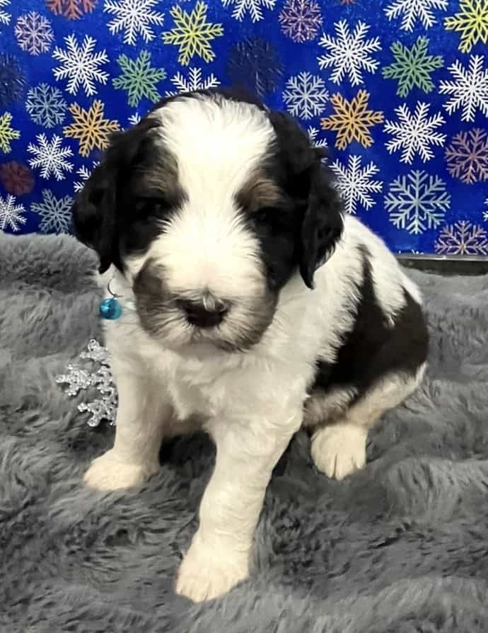 Bernedoodle puppy for sale. Puppies is be ready for their forever home on December 21st just in time for Christmas! Puppies will be vet checked up to date on shots and micro-chipped. The mom is an F1B bernedoodle weighing 55lb. Dad is a F1 bernedoodle weighing 72lb.