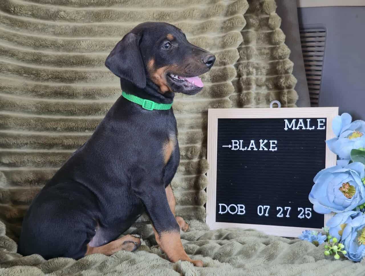 We have absolutely gorgeous Doberman Pinscher puppies available. They are available to PET homes only. Tails have been docked and dew claws have been removed. They come up to date on dewormings and vaccinations and have passed their vet checks and have been started on interceptor plus (which has heart worm prevention). Ear cropping is not included and will be the buyer's responsibility should they decide they want them cropped after pick up. They have been VERY well socialized with kids of all ages as well as other dogs. They are very sweet playful puppies. Puppies come with their health record, certificate from vet check and 1 year health guarantee. They are being sold strictly as pet only/no registration/no breeding rights. Pickup is highly preferred. We do offer ground shipping though when needed. Please don't hesitate to reach out with any questions!