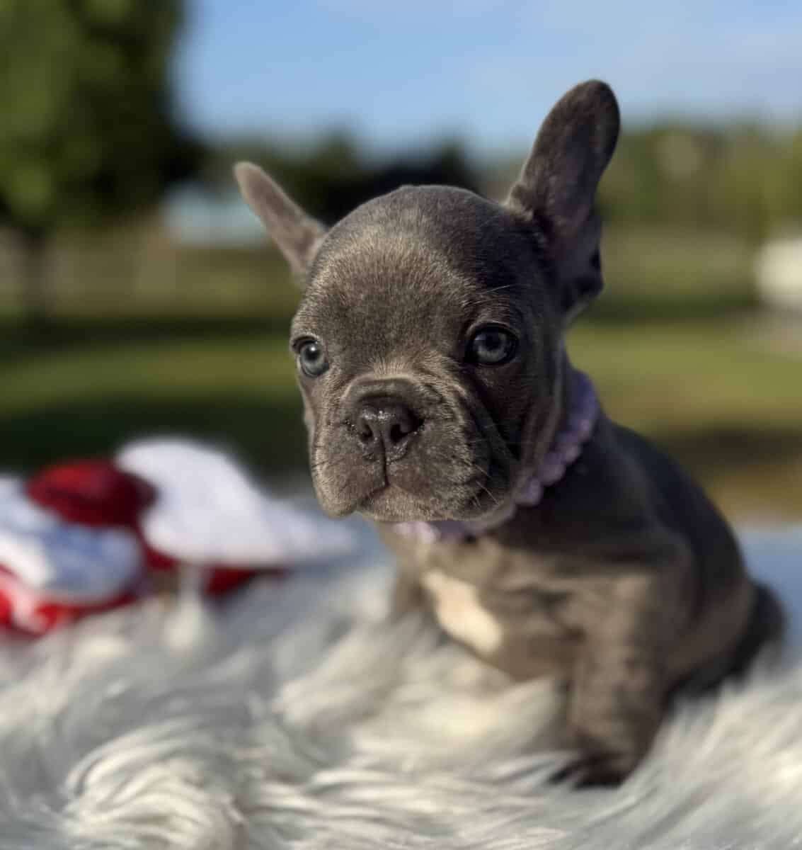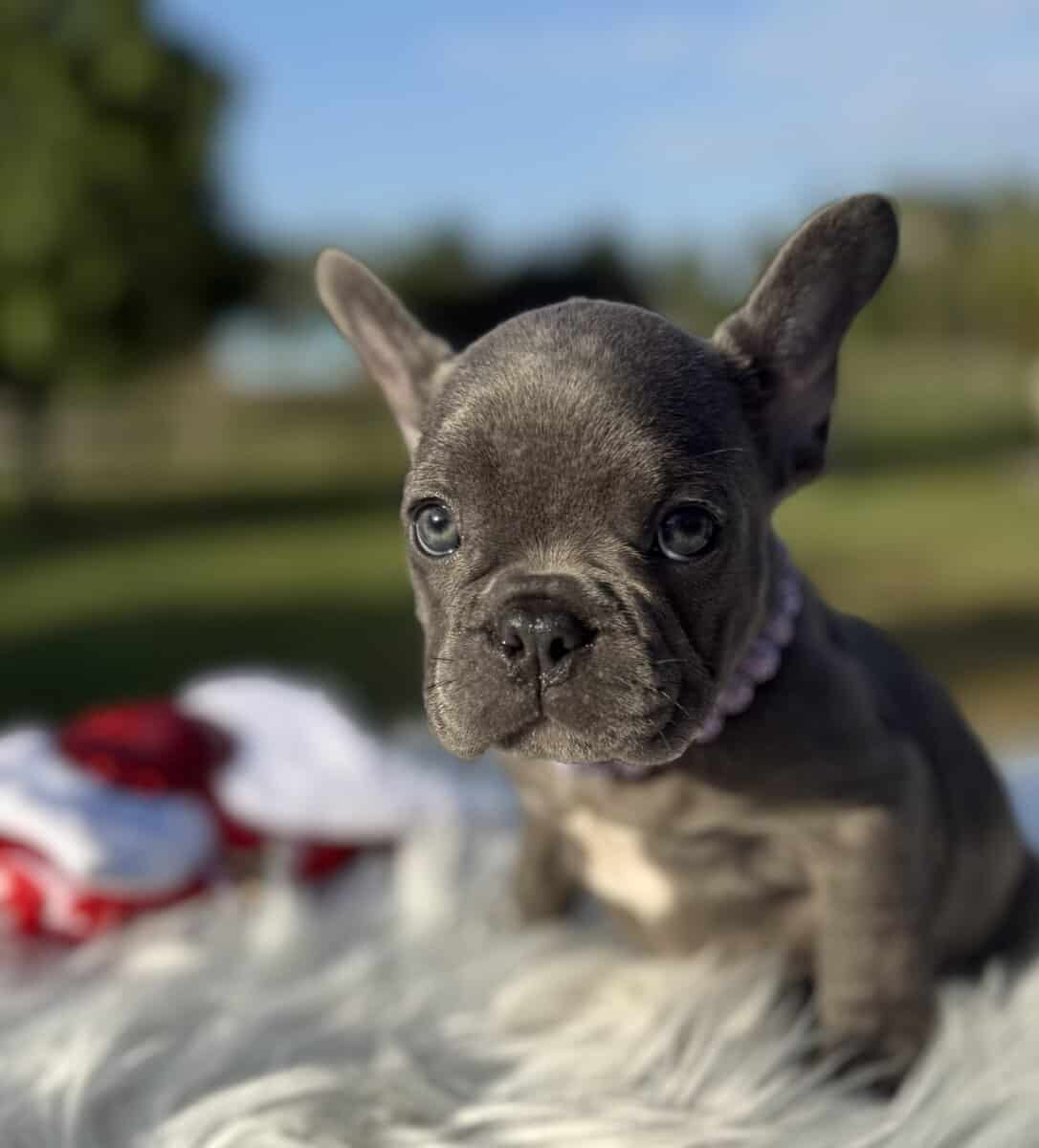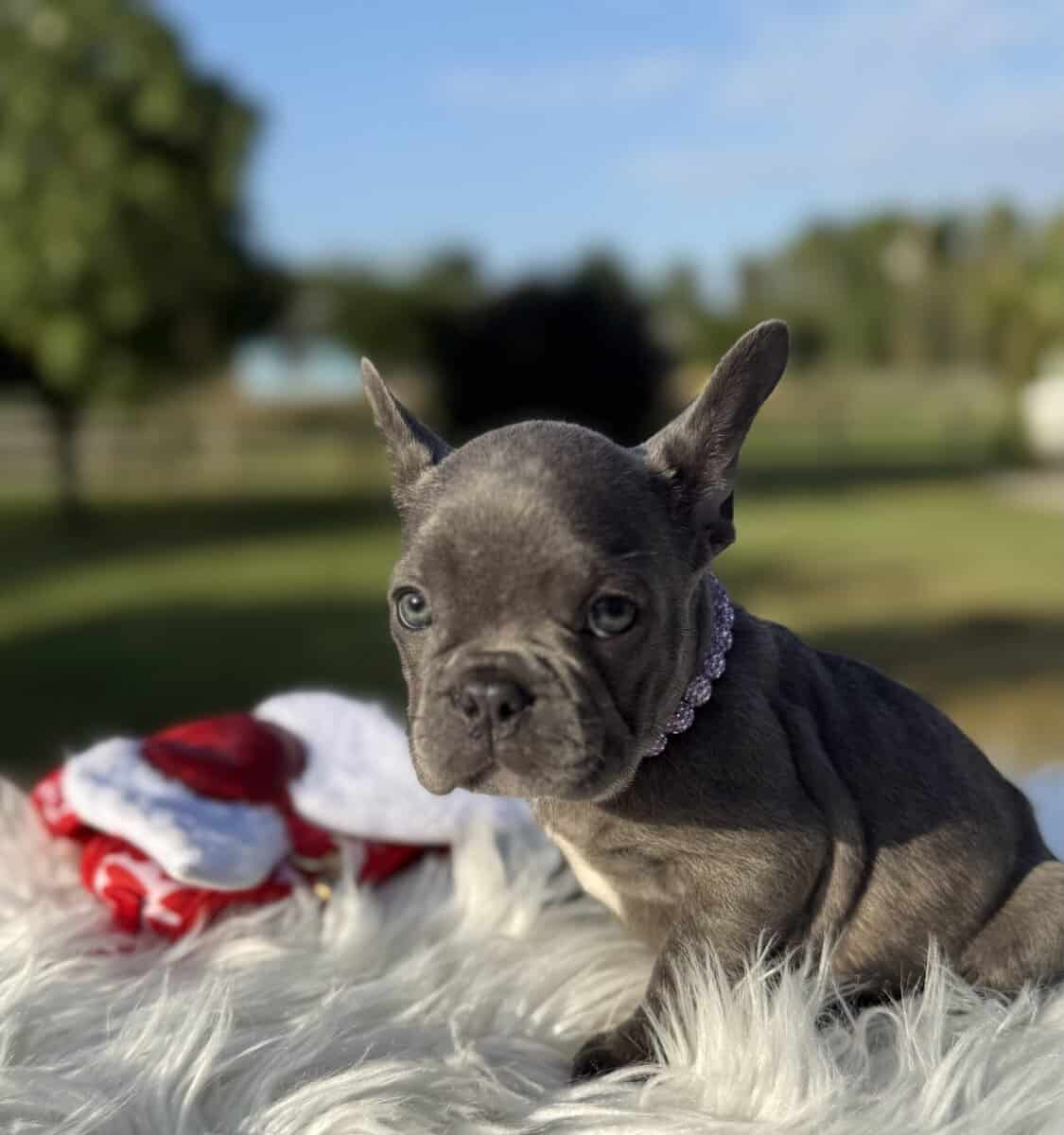 AKC Blue Brindle Female ready to go February 3. She will have age appropriate vaccines, deworming, microchip and health certificate out of health tested parents. We offer financing. . Message for more info.