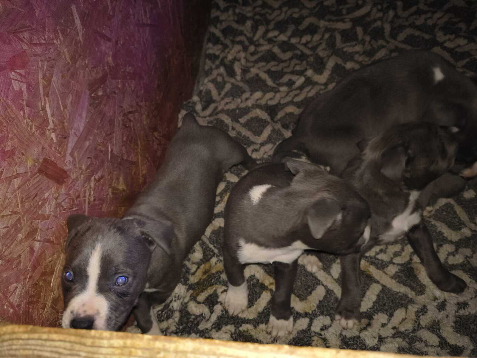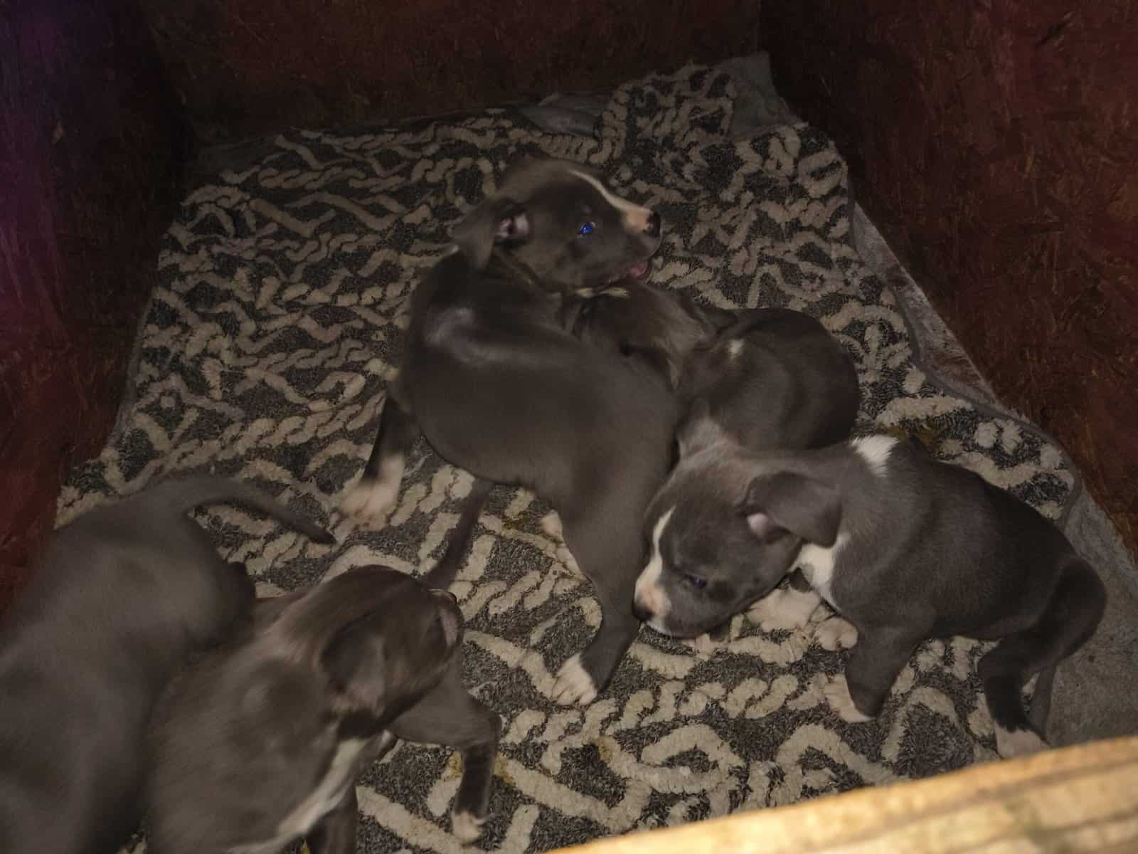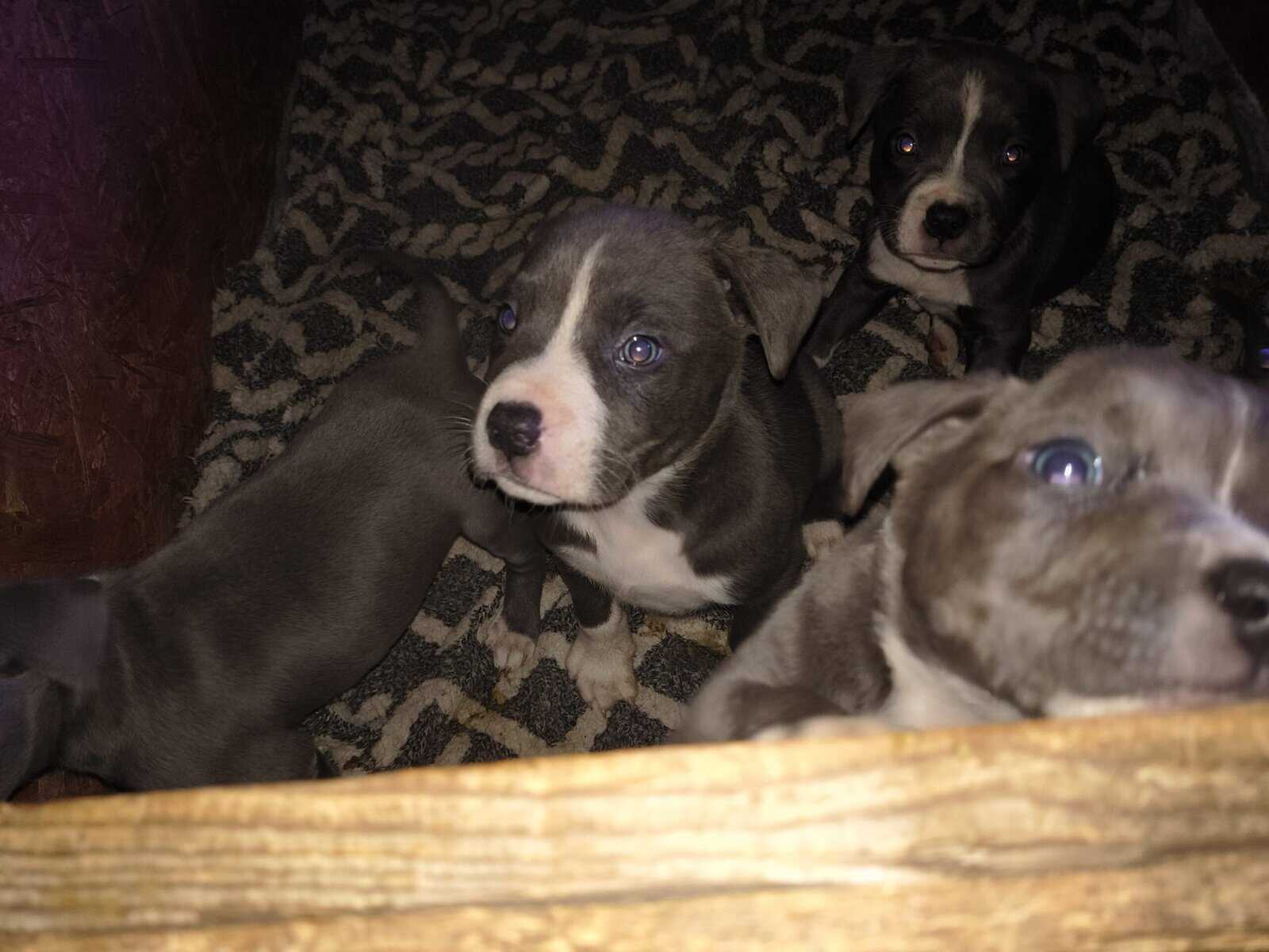 Just in time for Christmas. Blue pity puppies with blue eyes and White markings. Must go to go to good home that will love them, protect them and keep them. They are very sweet and gentle.