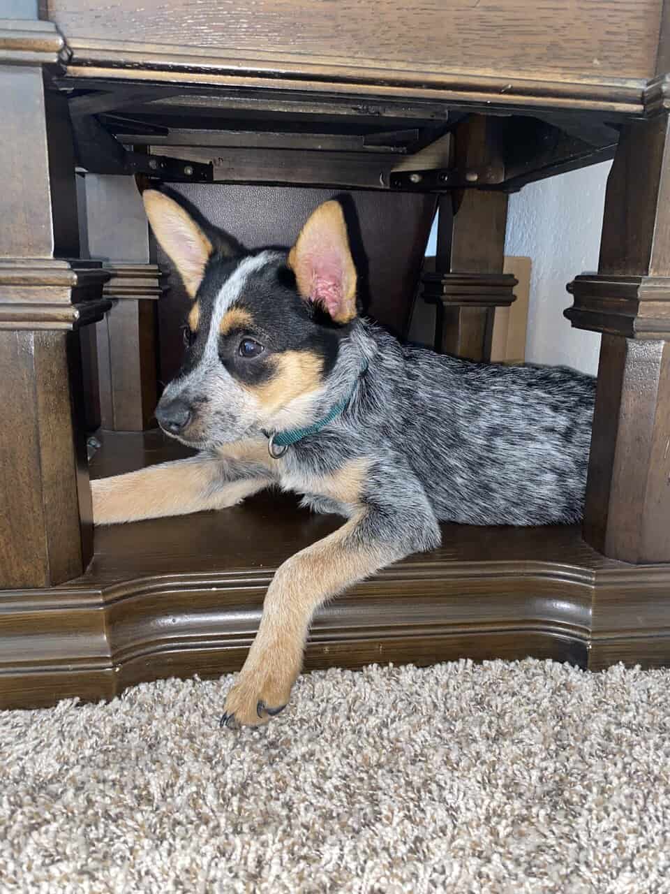 She was born on Mother’s Day this year so she’s still pretty young (6-7 months) but she’s still learning! She’s a pure bred Australian Cattle Dog, Mom was a red heeler and dad was a blue heeler. She’s such a sweet dog, very playful. She’s been so good around kids. She has not been vaccinated yet, but she’s very healthy and clean.