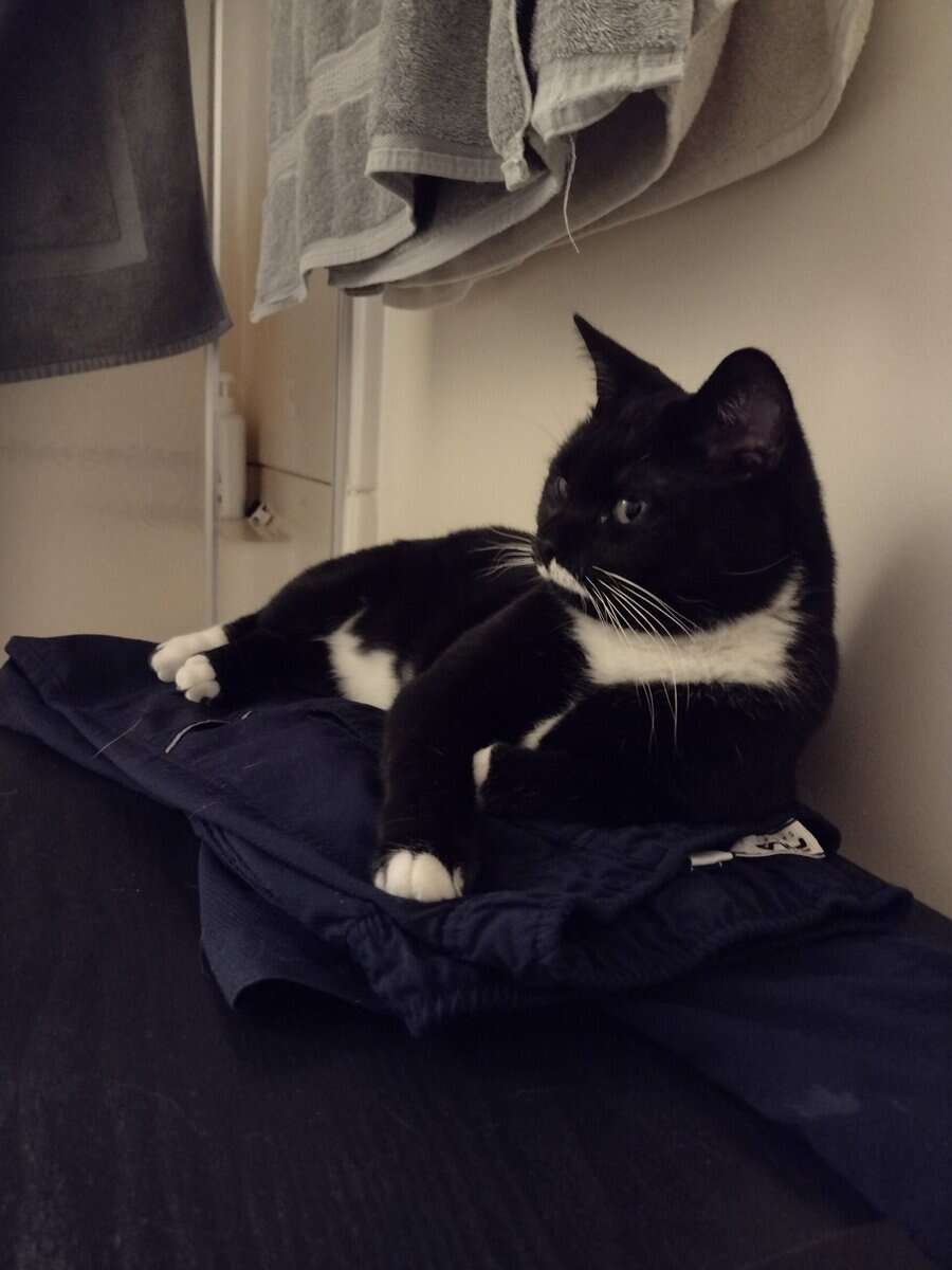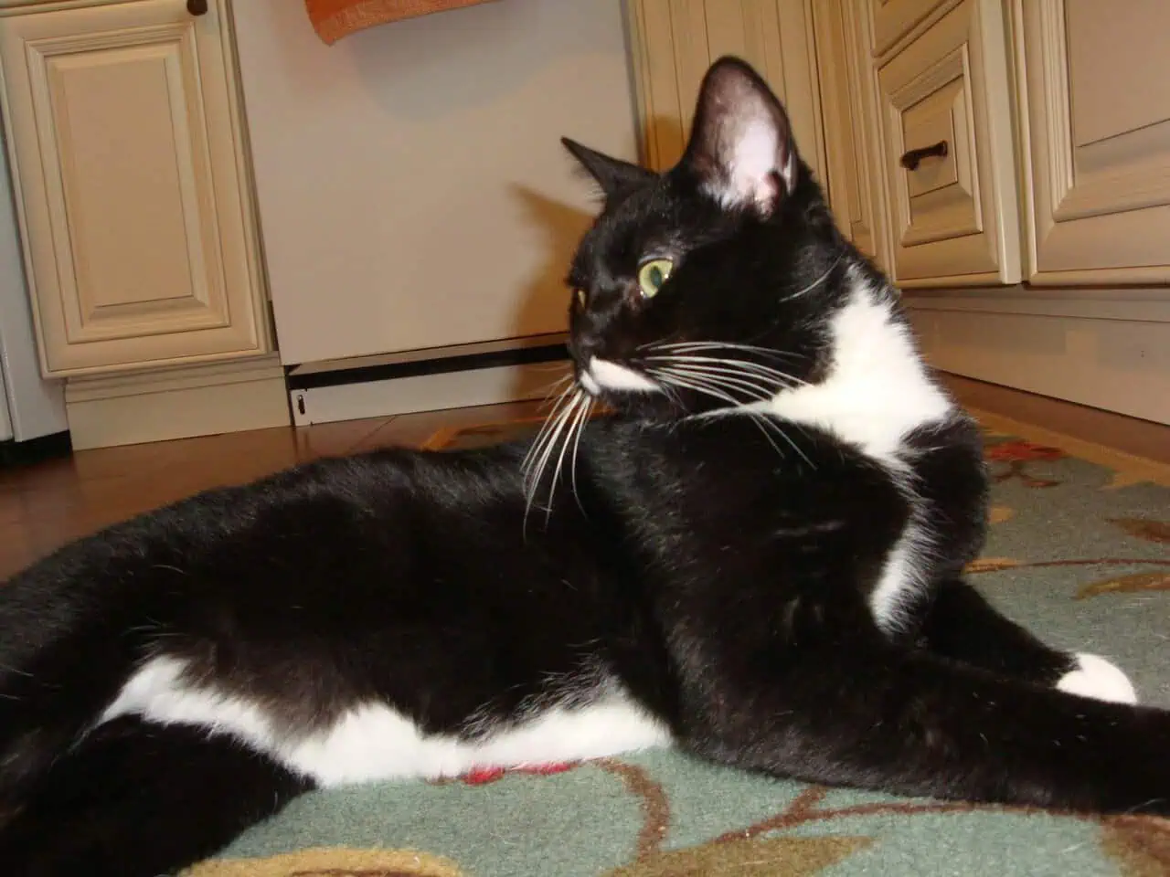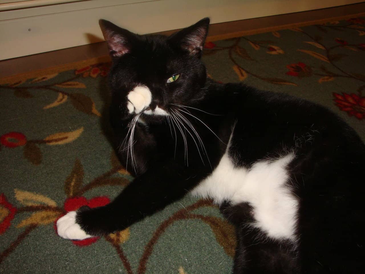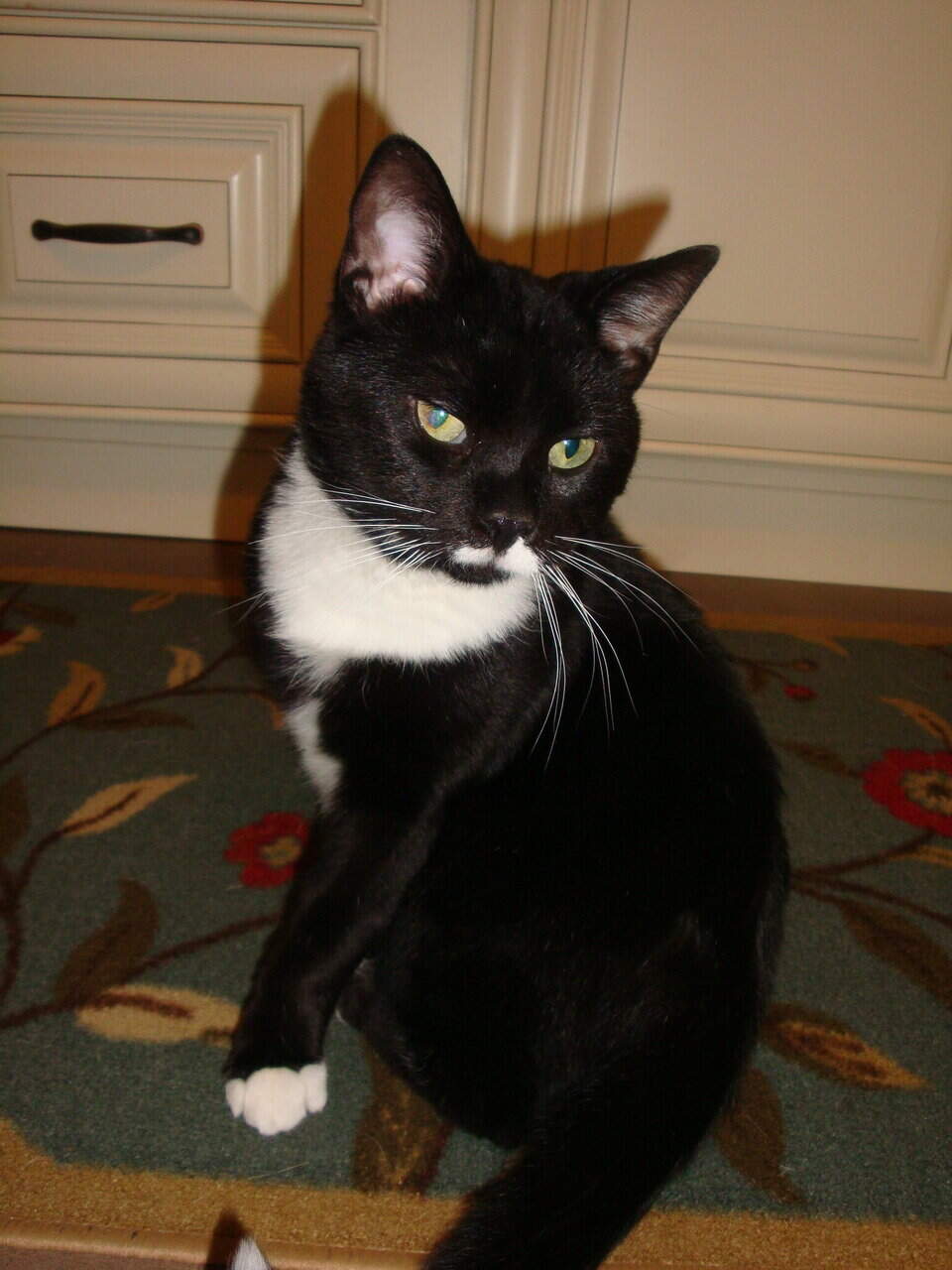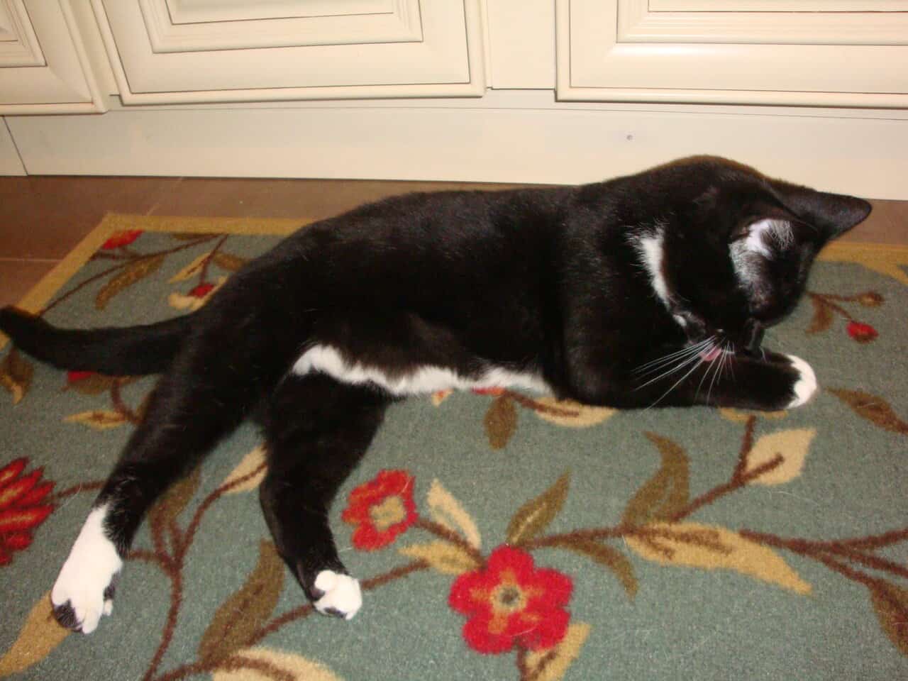 He loves people and greets us with excitement and joy. He loves to be petted, combed and brushed. He is playful and energetic but not destructive and is actually pretty tidy for such a young cat. He is perfectly comfortable with our dog (who is 17 lbs. and cat friendly). The problem has been his interactions with our existing cats; he gets nervous and will sometimes be aggressive towards them. It’s possible that he could learn to live happily with another cat but we have four and that’s a lot of anxiety to overcome.