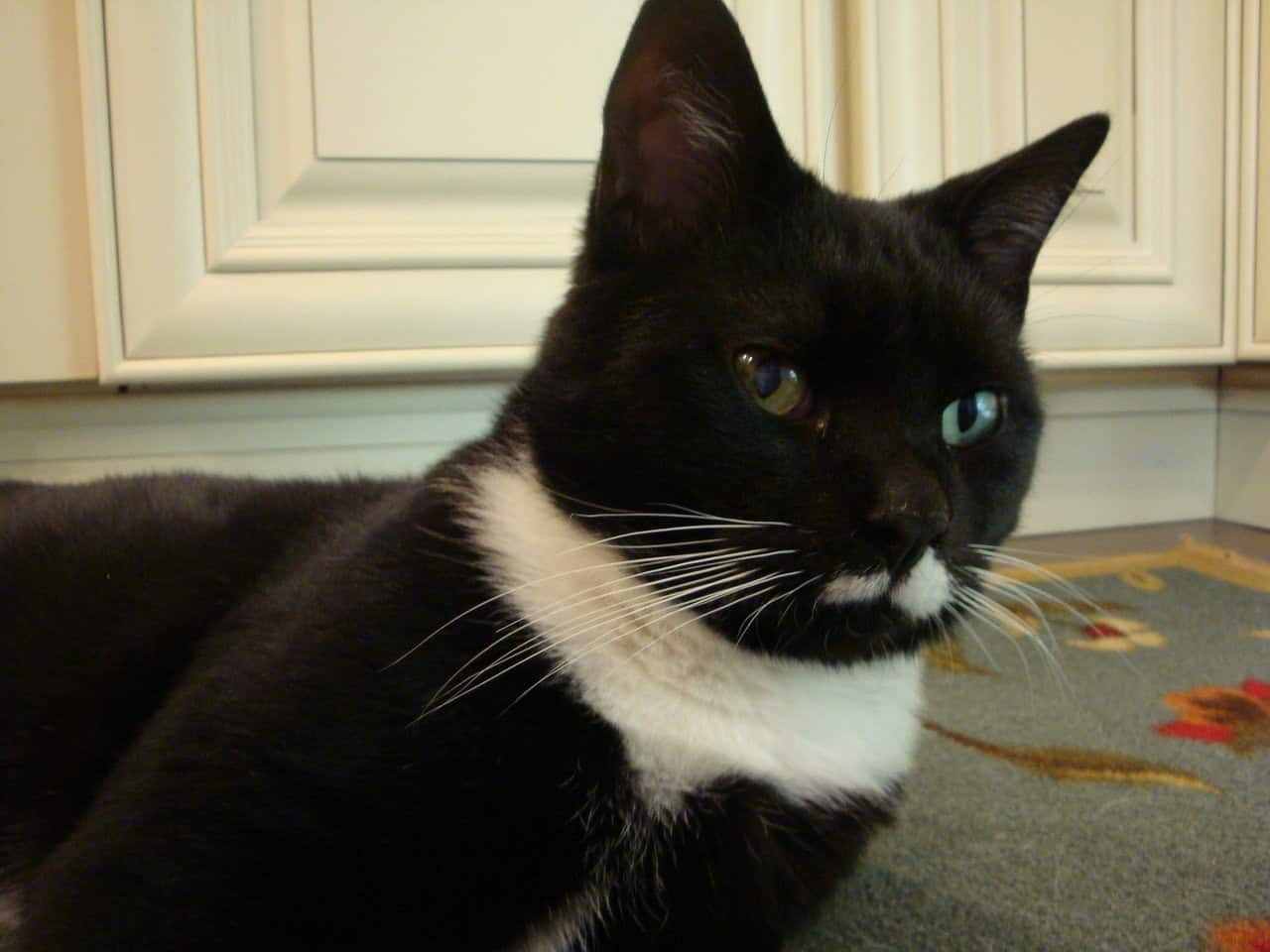 Cooper may look like a cool player with his mustache and tuxedo but his personality is more awkward lover-boy. He is a very sweet (deaf) boy who needs to find his person or people. He’s not crazy about his own kind so he needs to be the only cat, but his love of people and dogs makes up for that.