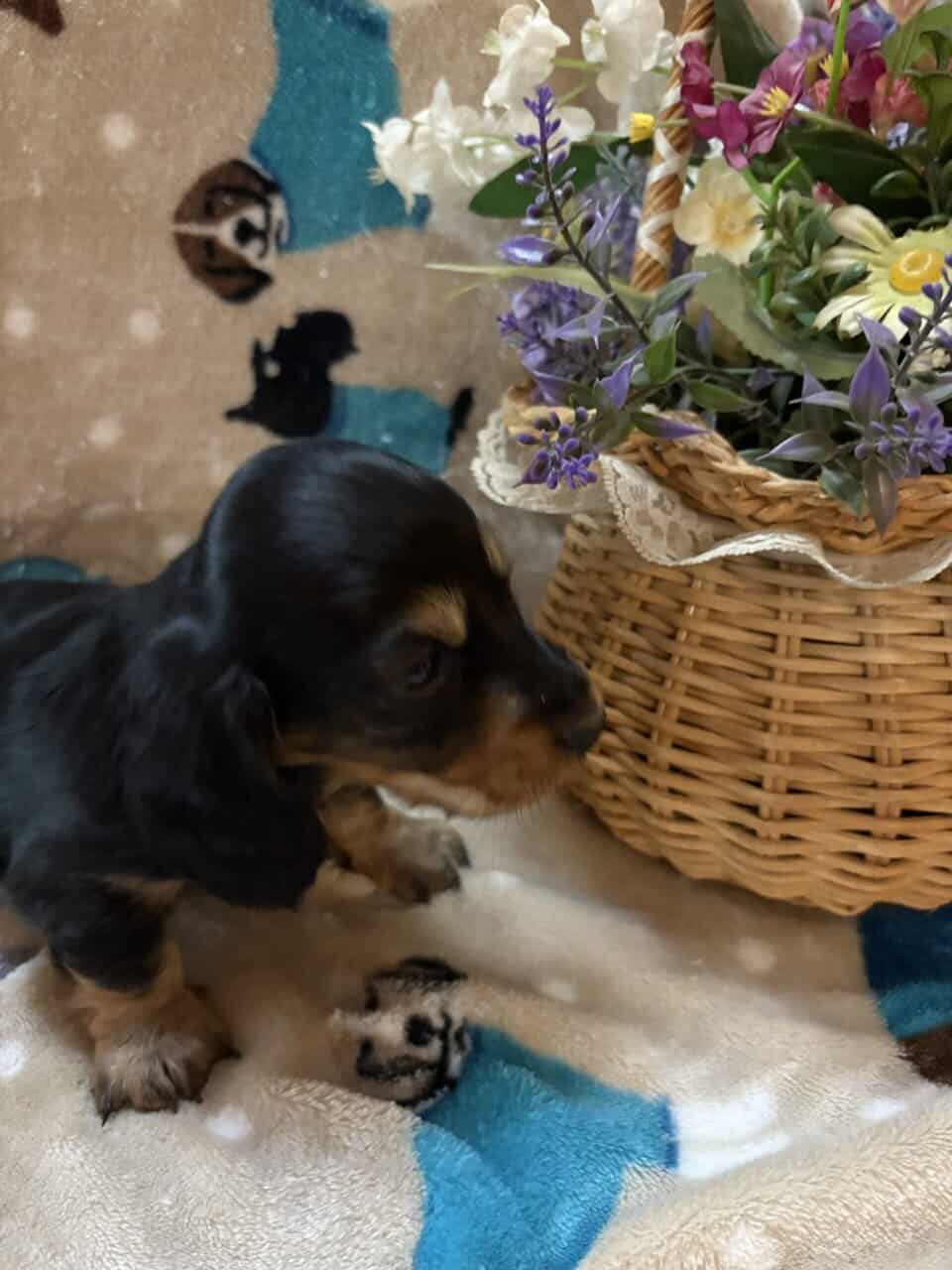 This beautiful little man can be your next best friend. He loves to cuddle and play, and is very easy going. His mom and dad are here for you to see. They are born and raised in my home. I have been breeding mini Dachshunds for 20 years. This pup was born on August 15, and he can go his forever home anytime you like. All puppies come with a health check and their first shots, food sample, litter papers (AKC). He should mature around 10 - 11 pounds, and has been raised around other dogs. I live in western Pa., you can pick up your puppy in person or we can help you find a puppy transportation service.