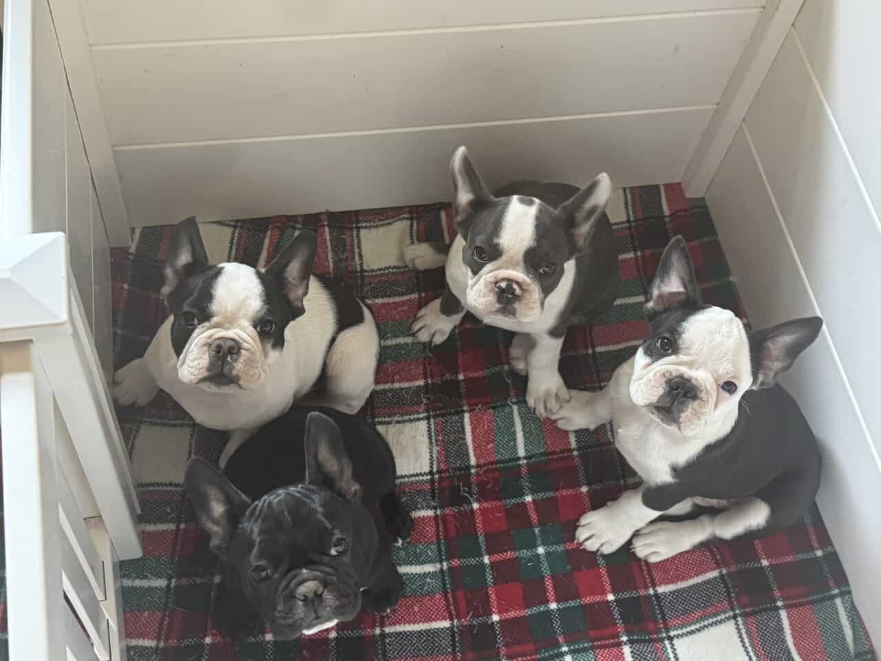 Looking for forever homes for these cuties. Thesr Irish pied cuties were born on June 22nd. Come with first set of shots and dewormed. They are 1/4 Boston terrier and 3/4 french bulldog. They are good with other dogs, cats and children. Email or message me for more info. 208.207.4098