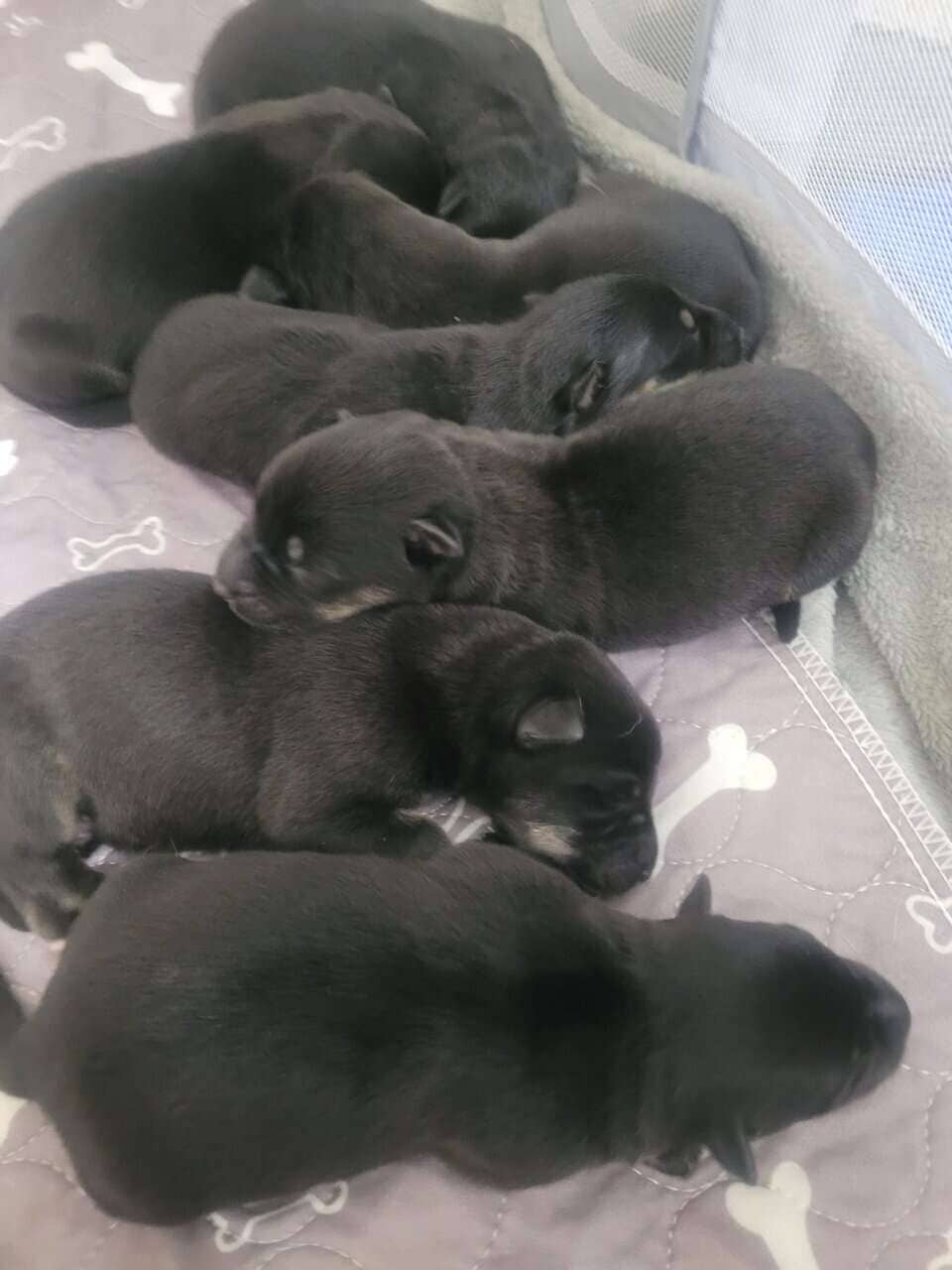 We have 3 females and 3 males. Both parents are on site and pictured with one of their puppies from a previous litter. Puppies are already being socialized as we have kids and they are used to being handled. They will be ready for forever homes the week of Christmas. Puppies will have their first set of vaccinations and puppy deworming weekly beginning at 3 weeks