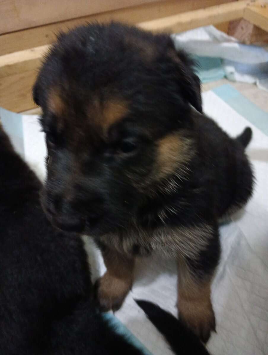 Born 12/17/2025. Two male and now two females available. Pure bred, parents available to see. Non papered. No hip dysplasia, all are healthy. Black and tan saddle coat.