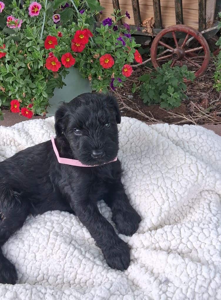 Giant Schnauzer Puppies 8 weeks old. Hand raised, spoiled, vaccinated, tails docked, health checked. Working on crate training, potty training. Call or text for info. 573-406-8909 or 573-406-9242. Great hypo-allergenic, low shed dogs. They are great protectors too. Good family pets. Parents are AKC. Puppies can be.