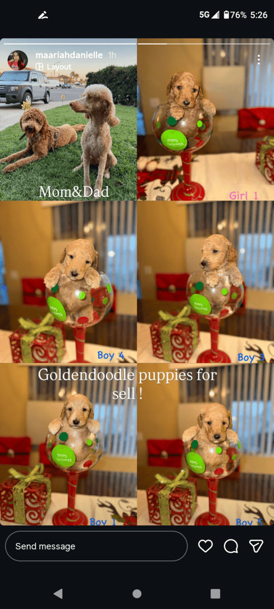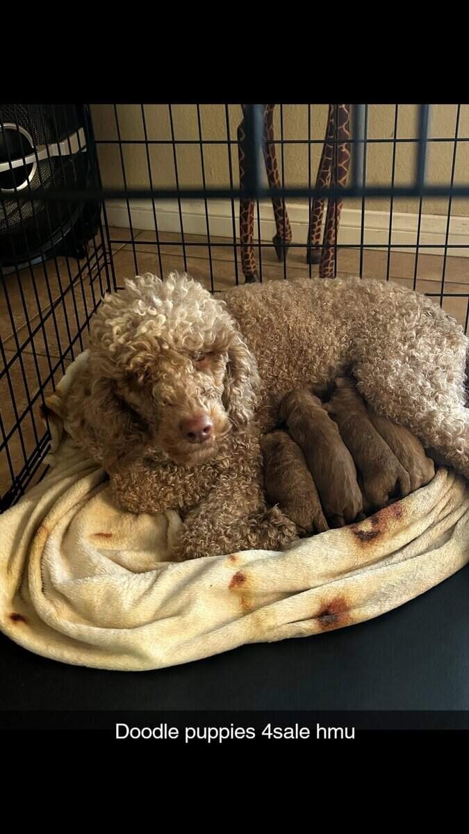 Hello Julio here looking for a good home for some male golden doodles puppies F1Bb perfect family dog brown in color looking for serious buyers only thanks
