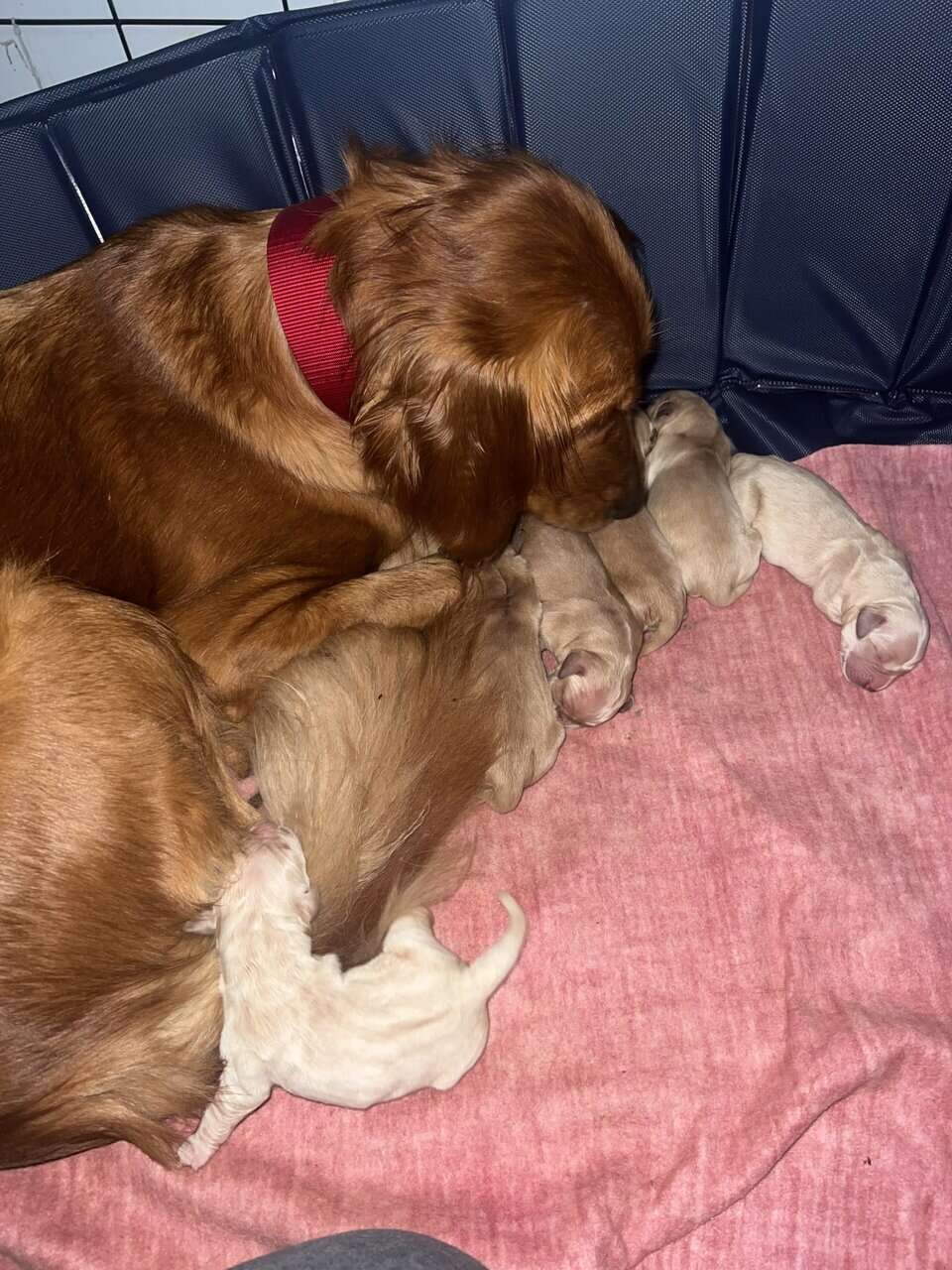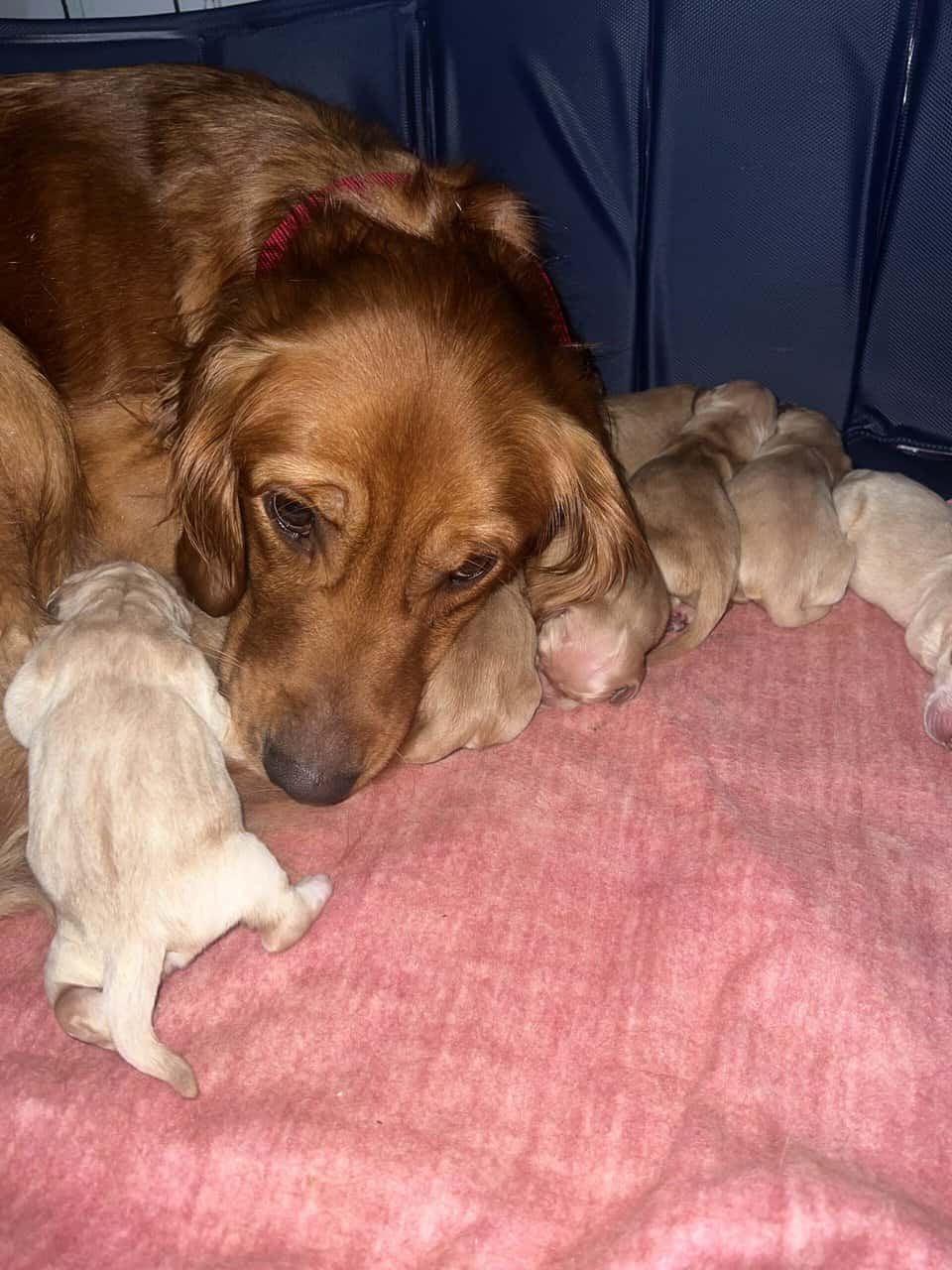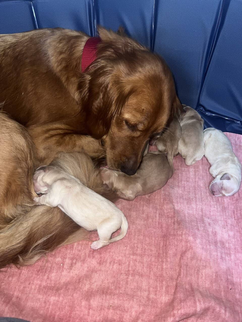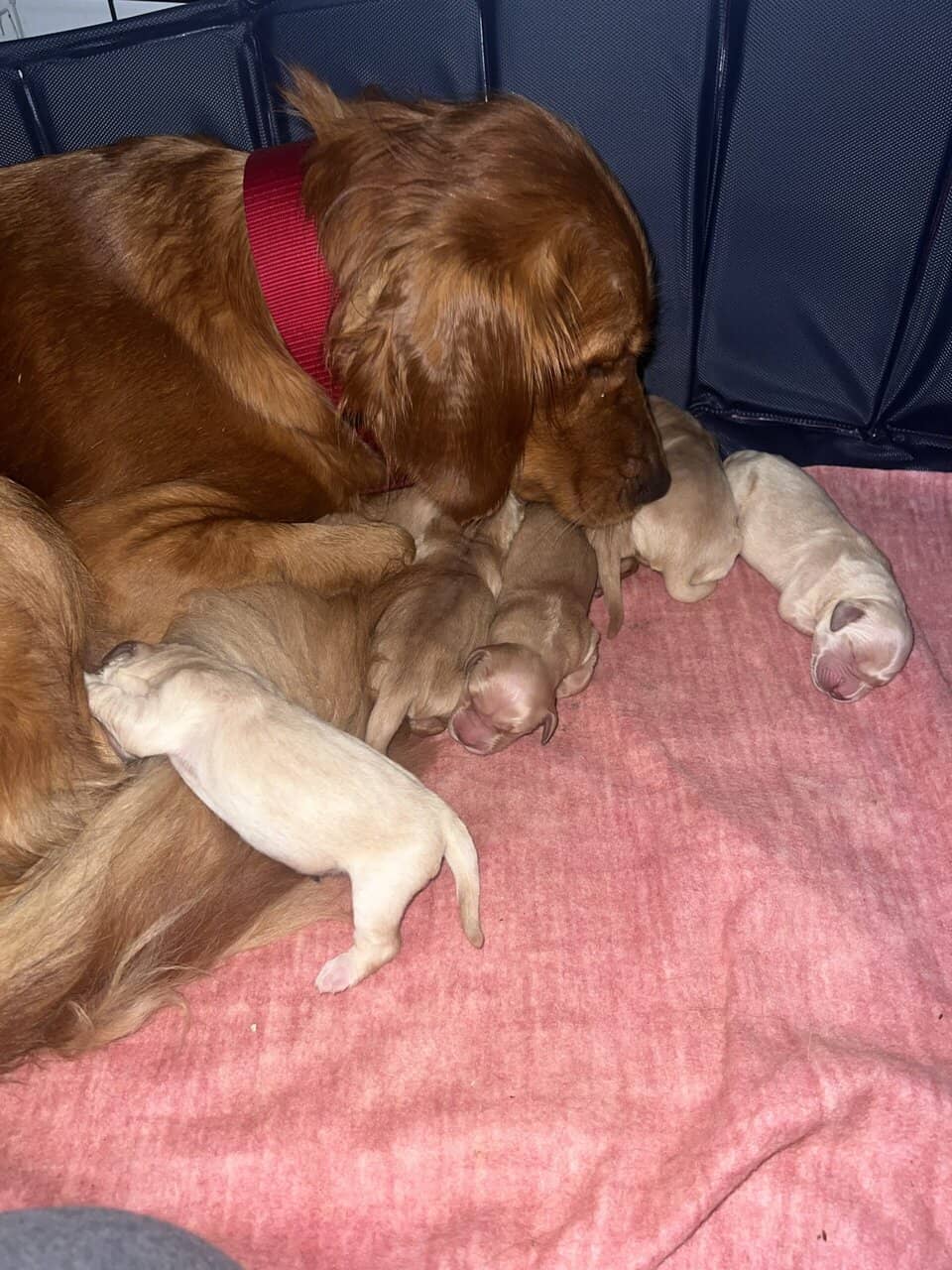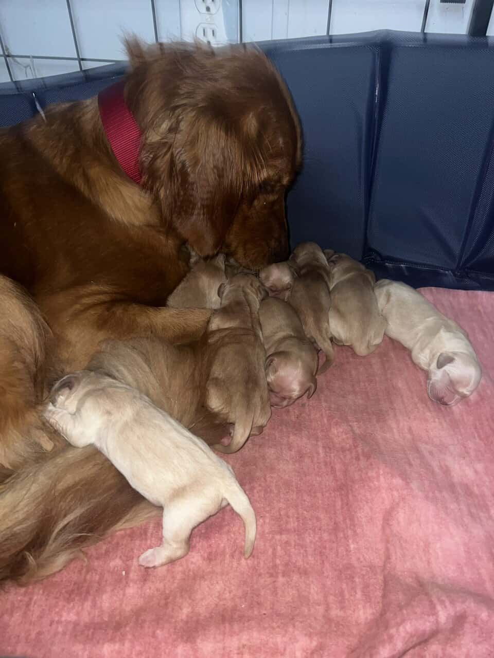 Golden retriever puppies ready December 16th, mom and dad on site. They’ll come with first round of shots,dewormer and folder from the vet.5 males, 4 females. Females are $1200 and males are $1000 Located in Richmond Maine, pm for more details