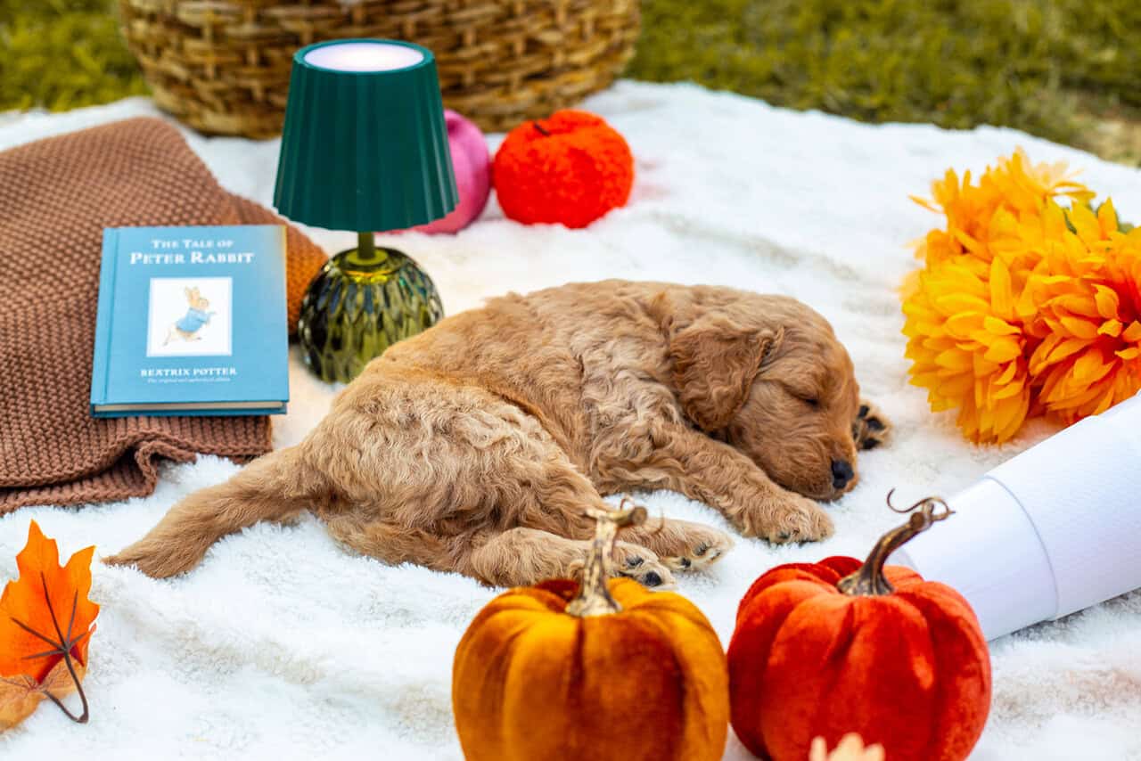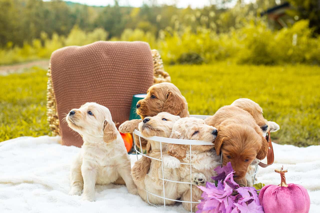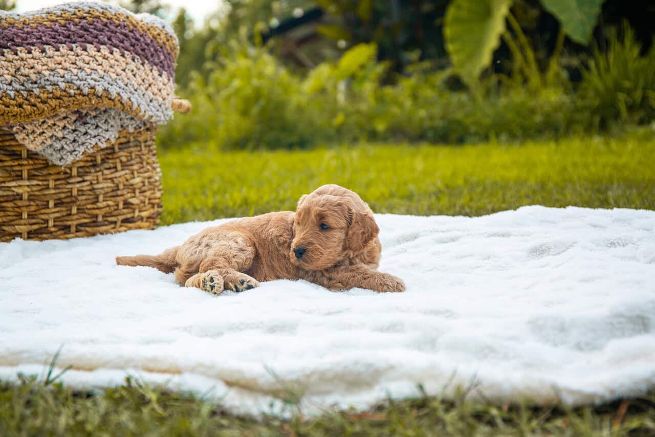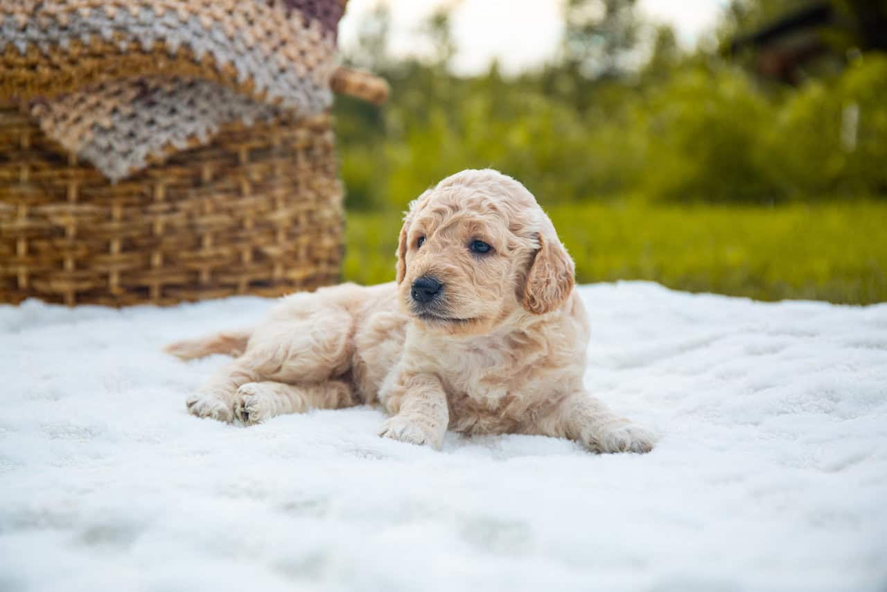 Family raised goldendoodle in the heart of Virginia. Dad is an f1b goldendoodle, mom is an AKC registerable golden retriever. Baby doggie is a Better Back Goldendoodle, or an f1b backcross resulting in hybrid vigor. Mom and dad are both family pets on site. Both mom and dad topped out at 60lbs. These puppies are hand raised by homeschool family. Desensitized to outdoor and indoor noises. Toddler socialized. Very social and friendly pups.