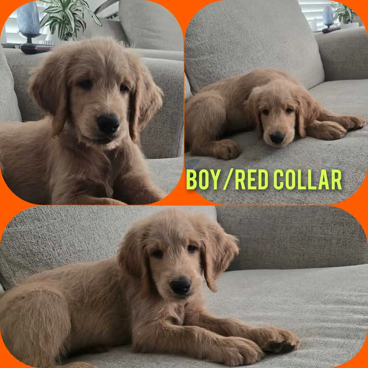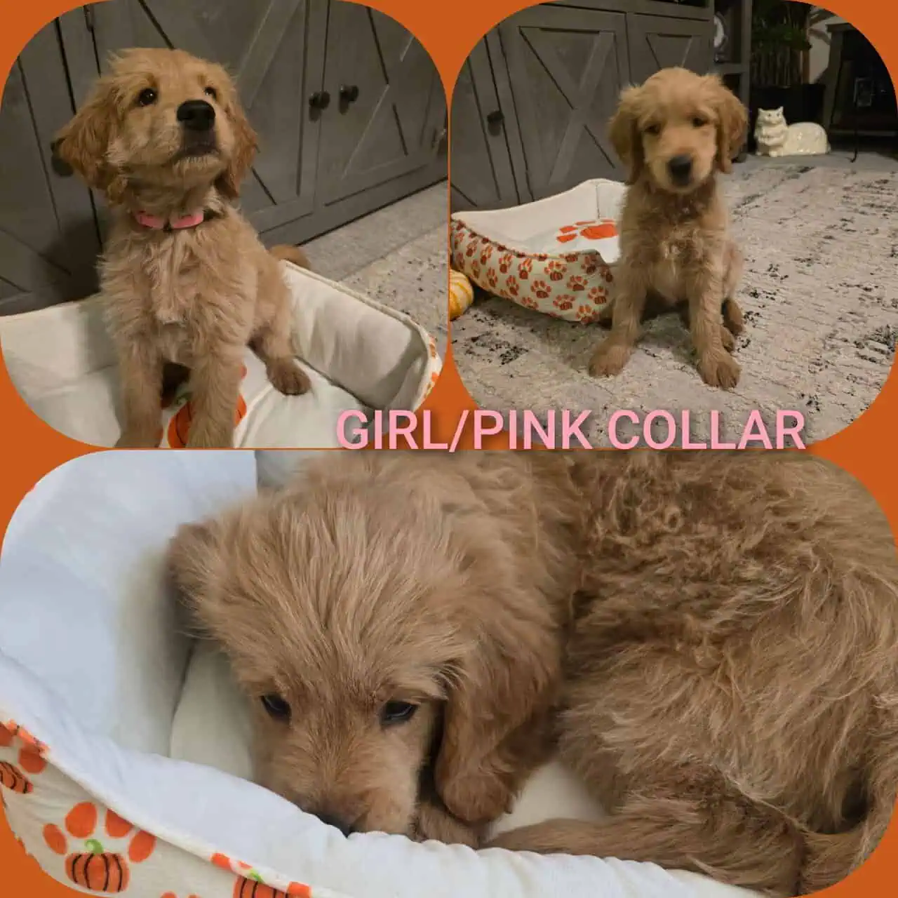 1 male and 3 female Goldendoodle puppies available and ready for their forever homes. Mom (50/50 Goldendoodle) and Dad (full Golden Retriever) in home and available to meet. They have had their first 2 shots and dewormer. Born July 11th. Puppies are used to children and a cat.
