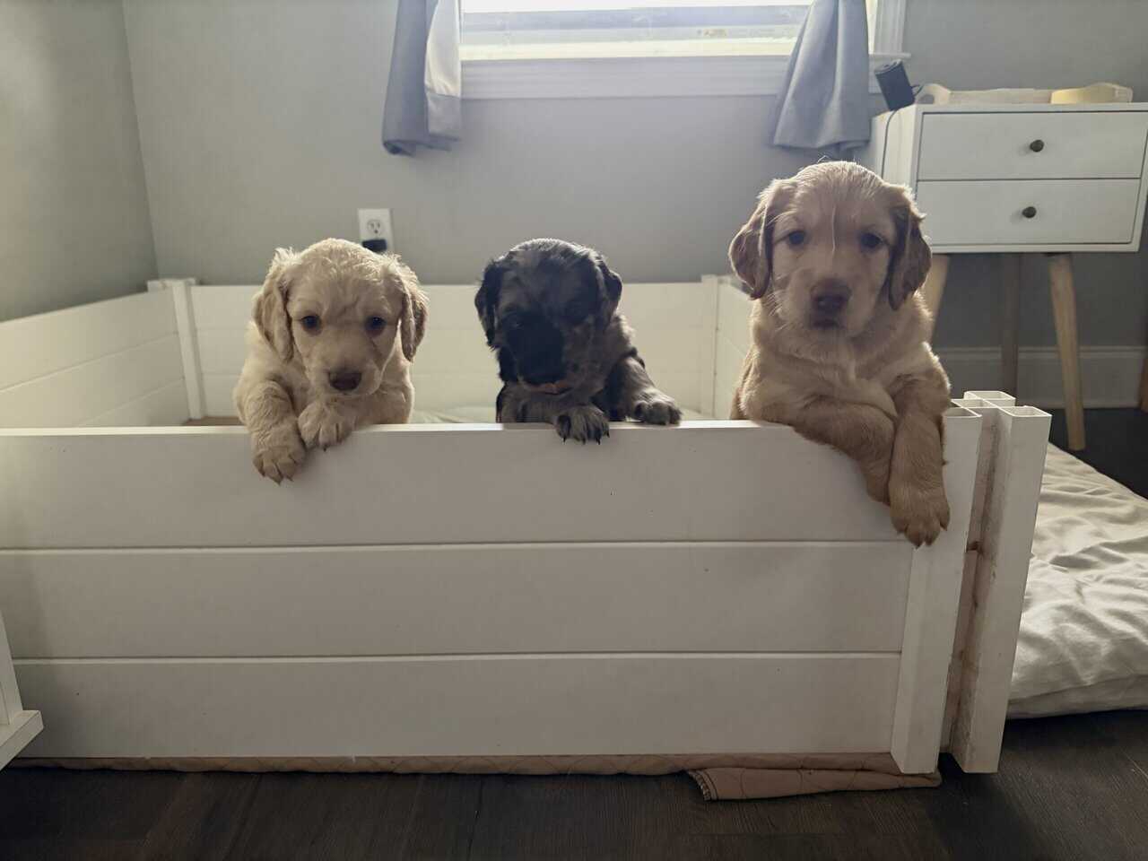 Three males goldendoodles. Well socialized, kennel trained, potty training started.