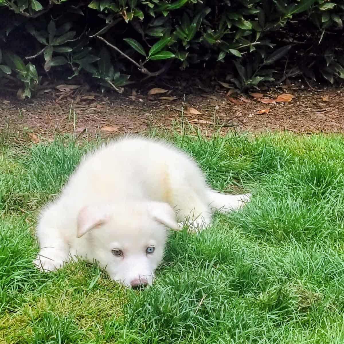 · TAZ (Male): The whirlwind! A bright white coat with deep "galaxy" blue eyes. He's always the center of the puppy playtime!