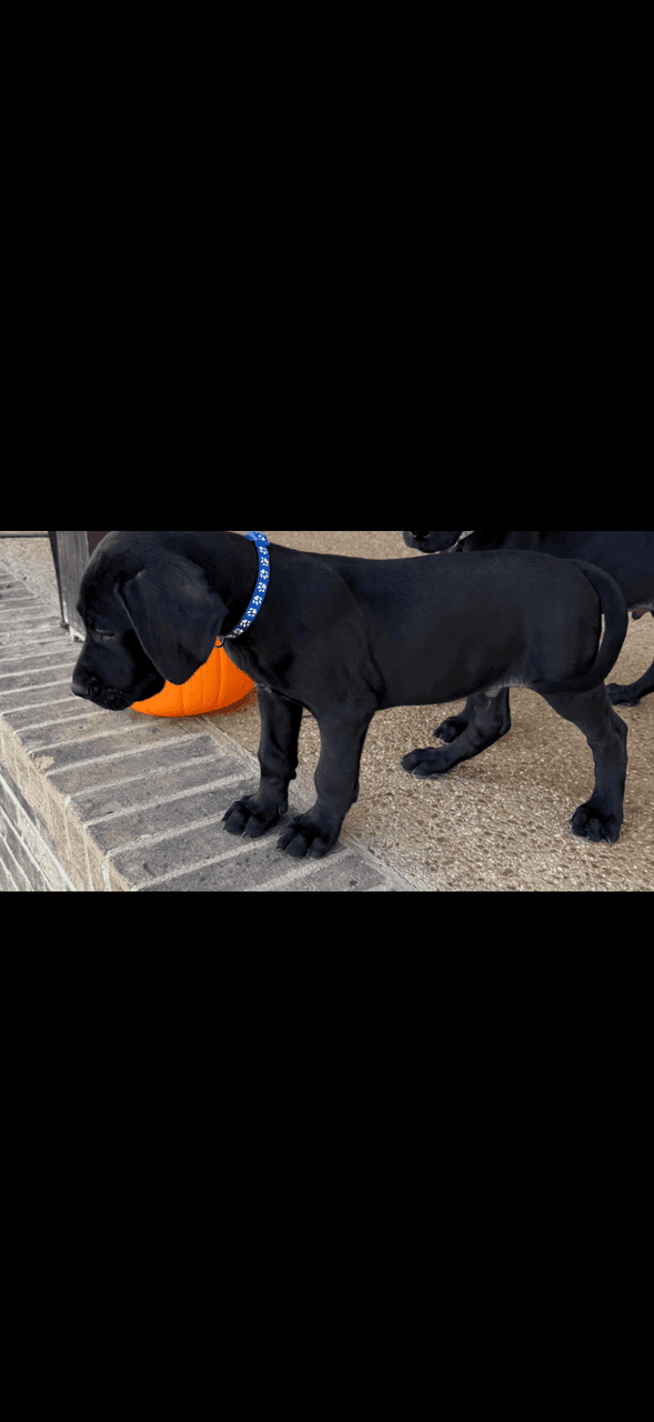 This is our biggest boy out of our litter. He may end up being solid black as he has a very tiny white spot on his chest. He is looking for a family to love him. Me and my wife have raised these babies in our home. They are currently eating Diamond puppy 3 times a day. Please call or text