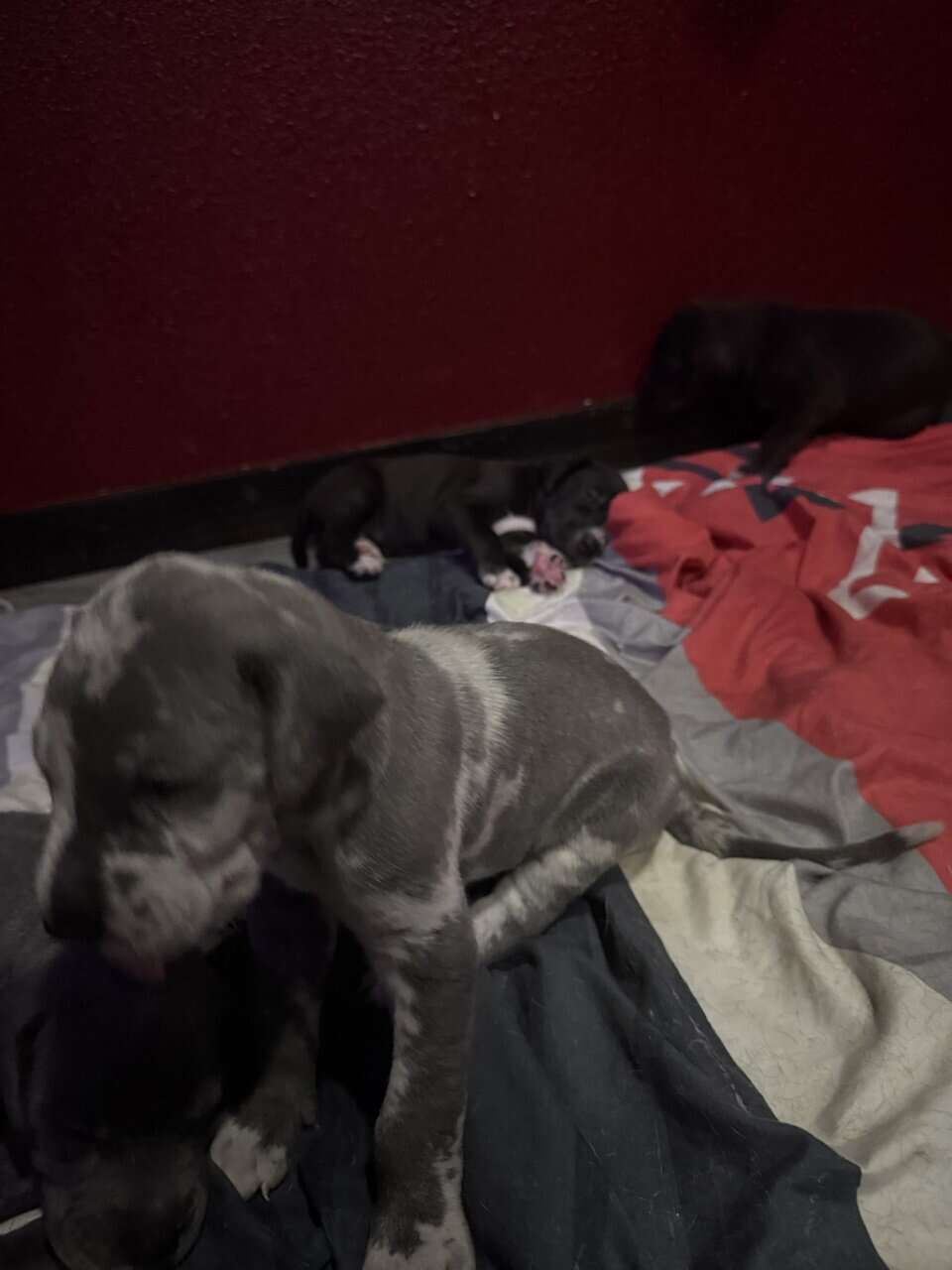 The most loving gentle giants!!! Born September 4th. The all gray puppy is the only female. Puppies are raised with other dogs, cats and chickens. That are super friendly and are treated like family! I have both parents on site! Come pick out your forever gentle giants!