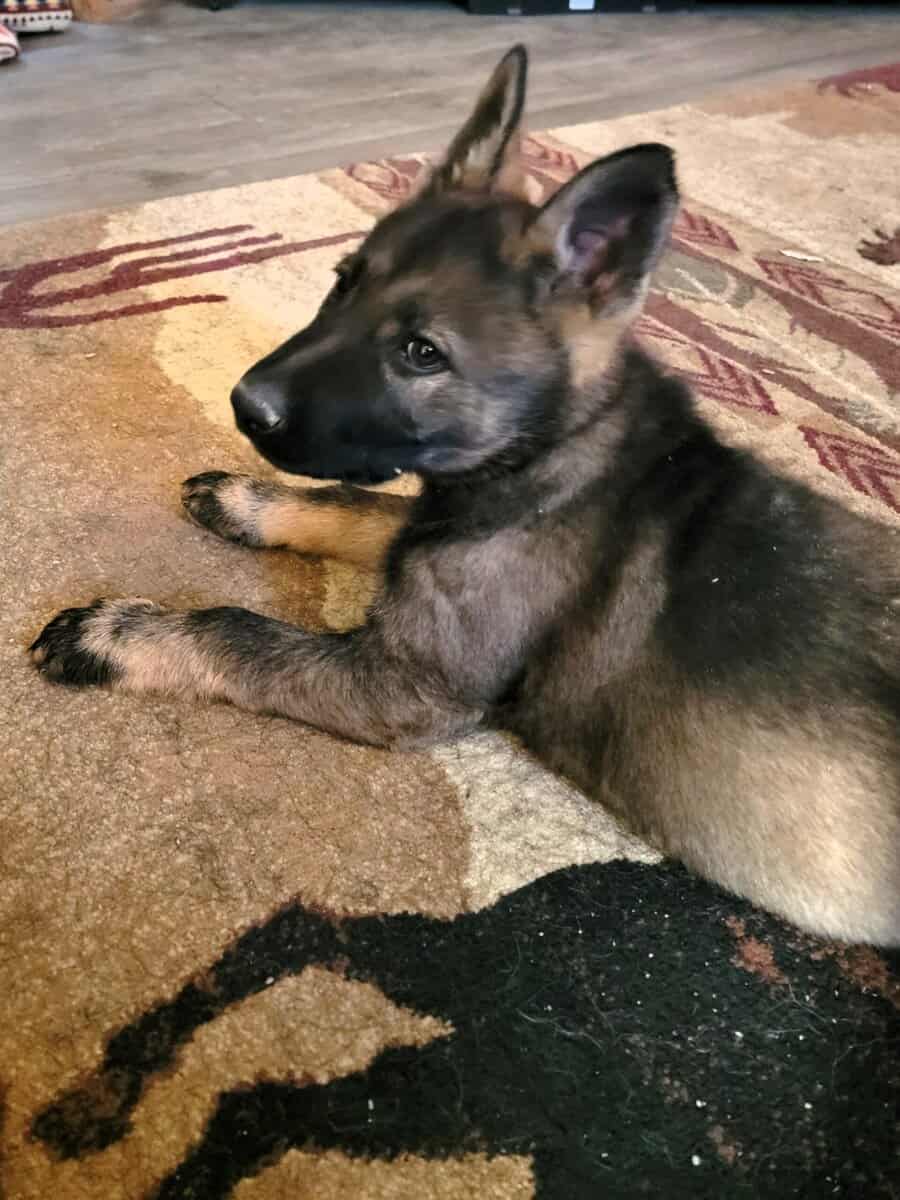 AKC-registered working-line German Shepherd pup raised for clarity, drive, and handler focus. Out of Abel × Kimber (Xarma de Ola-Zar).