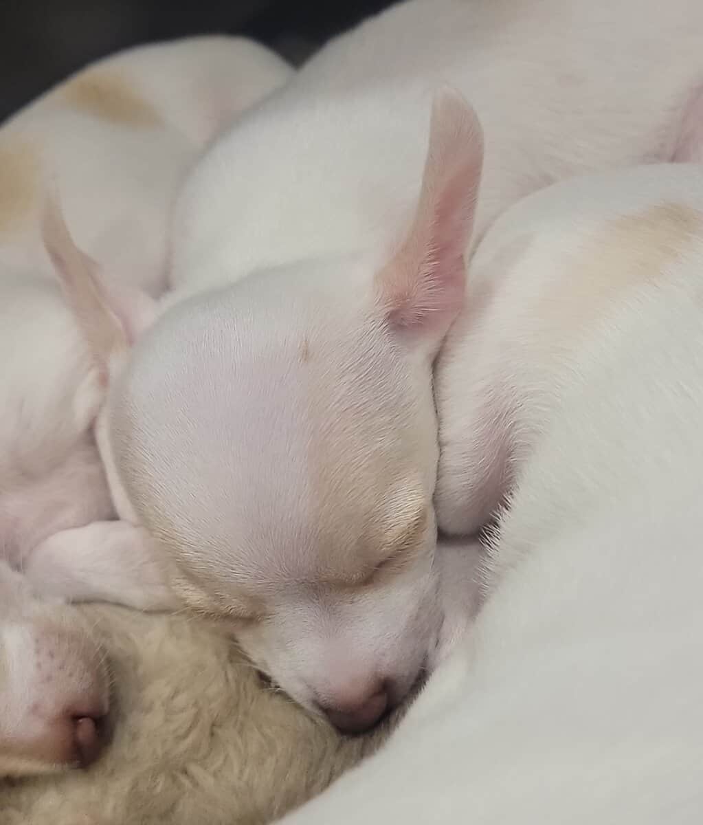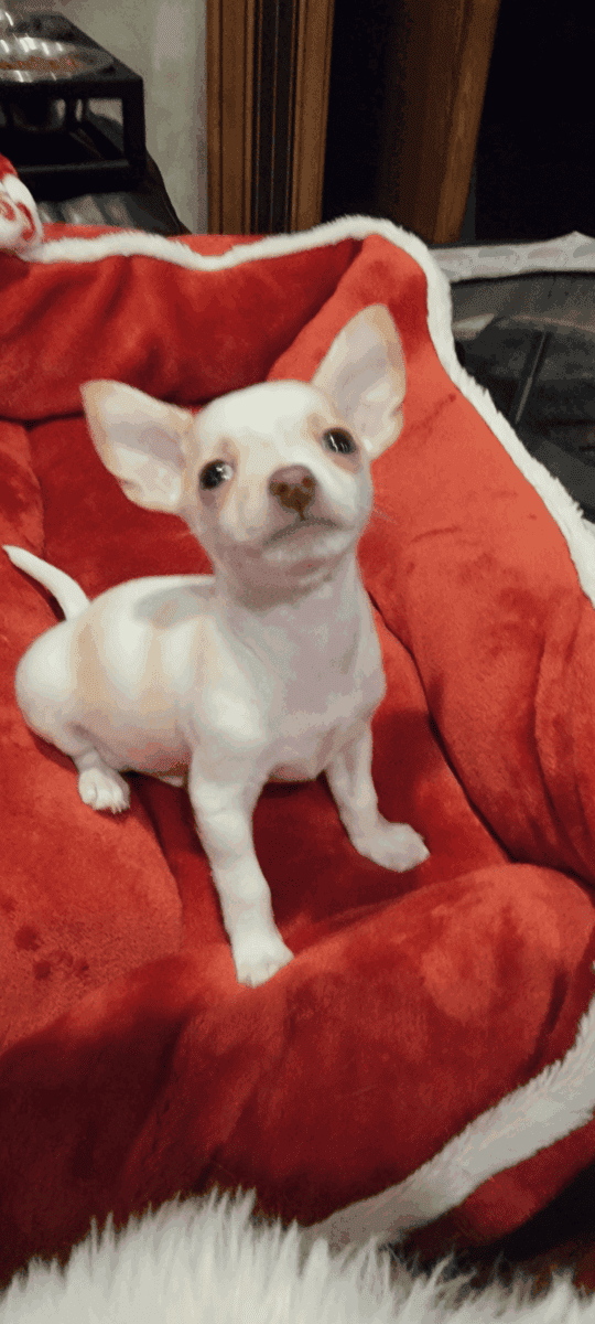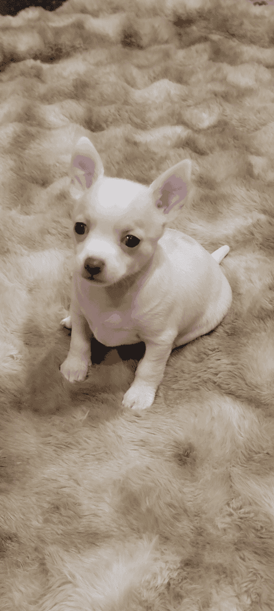 Ginger - 7lbs. The Mother, (Chihuahua & Miniature Greyhound - Greyhuahua,) and Teddy Bear 5 lbs. The Father, (Pure Breed five time AKC National Champion blood lines Chihuahua) are the proud parents of Lily.
