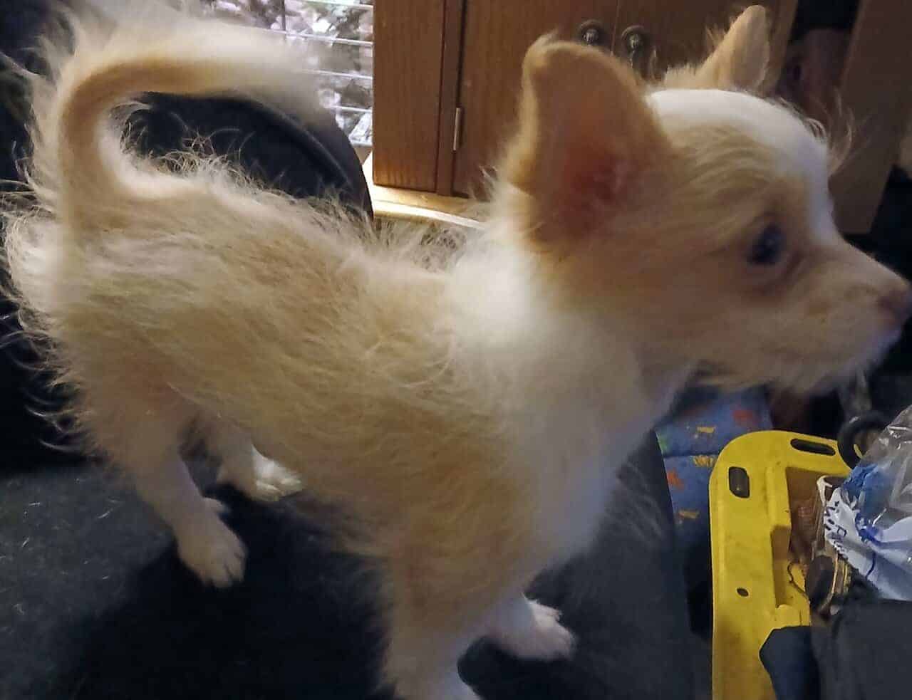 Her mother is very small, teacup size chihuahua, apple head with an excellent demeanor. Father is a chihuahua mix with long hand probably the smartest dog I have ever known.