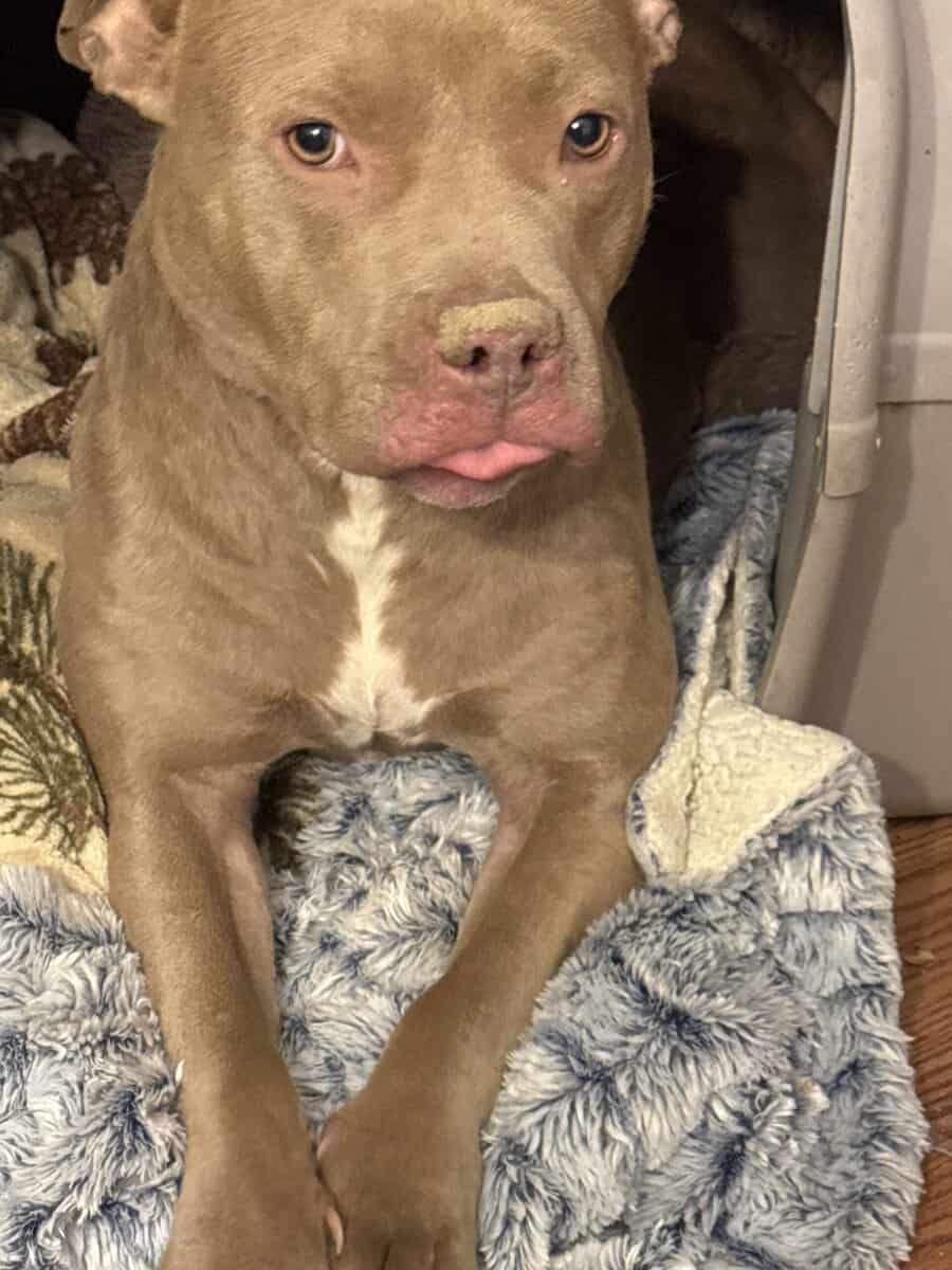 I rescued this dog from a very bad situation where I was told and I believe she was horribly abused, attempted drowning, beatings, starvation, left out in the cold. I don’t know much about her but I have small puppies and I’m not comfortable having them around her only because I don’t know her very well. She deserves to have a good home where she’s not abused because of how strong she is. She has been nothing but sweet since I picked her up 2 wks ago.