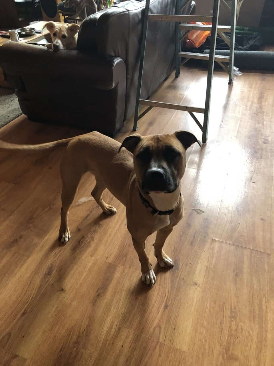 I don’t usually have young dogs, as I’m old. I adopt older dogs, got this dog when it was being neglected. She’s approximately 2 years old. Very loving, learnt by my other 3 old dogs. Very active, I can’t keep up. She does well at the dog park. Loves to cuddle.