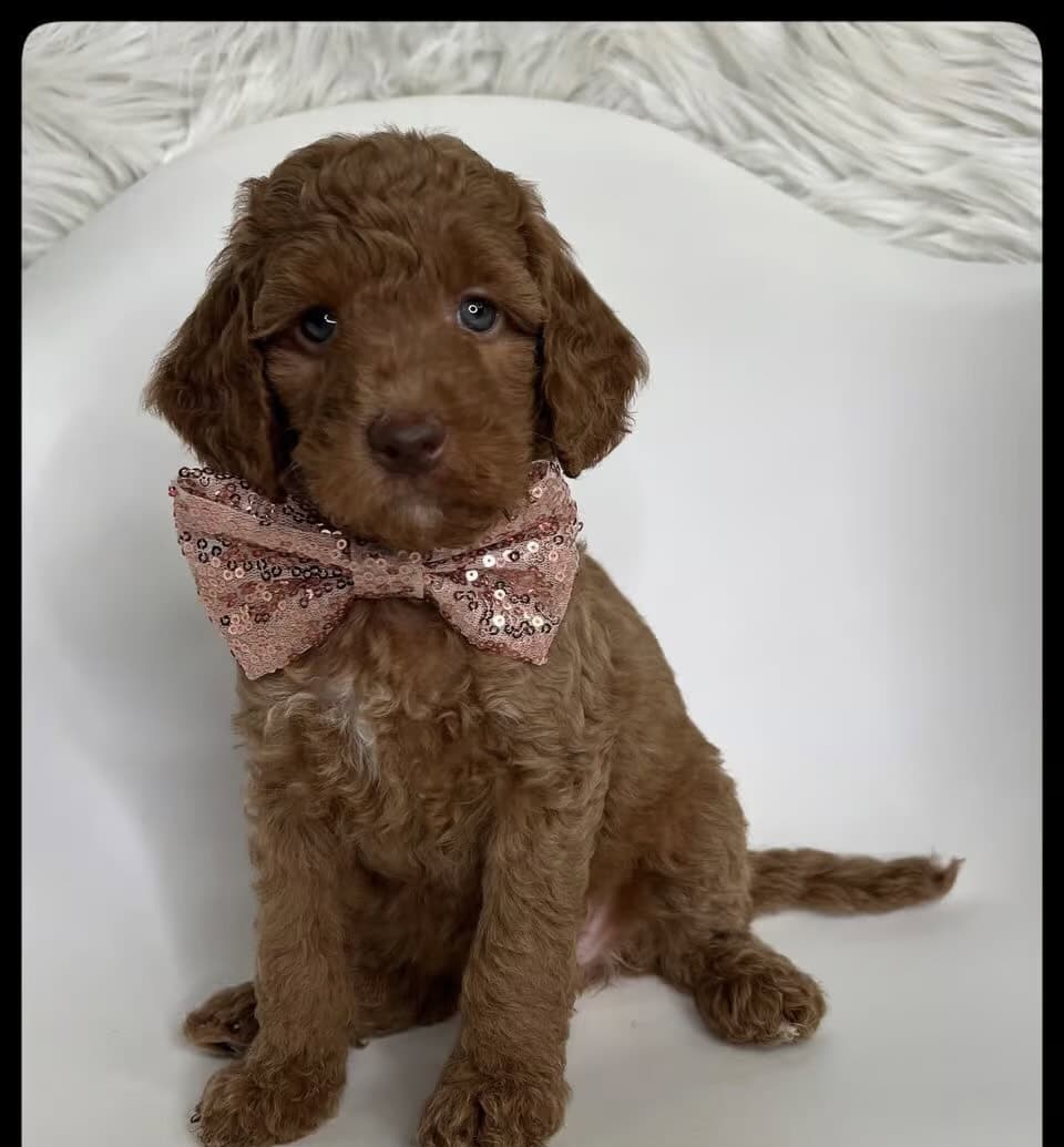 Meet Lucy, our adorable F1b Goldendoodle girl! 💜