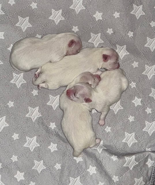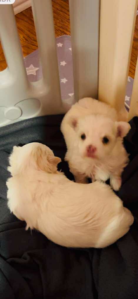Beautiful baby boys will be ready after 10 weeks .pure white with a hint of lemon.We are not a kennel these pups are from our pets Laney and Charlie.There weight will be 5.5 to 6.5 lbs .Great with children and adaptable to large homes or apartments .We keep our dogs cut on the shorter side but if you want the hair will grow to the floor shiny and silky white.