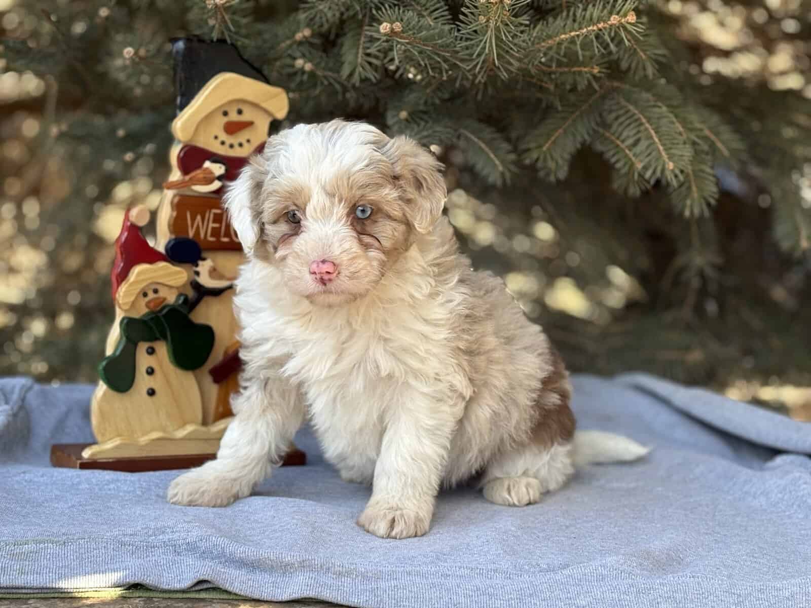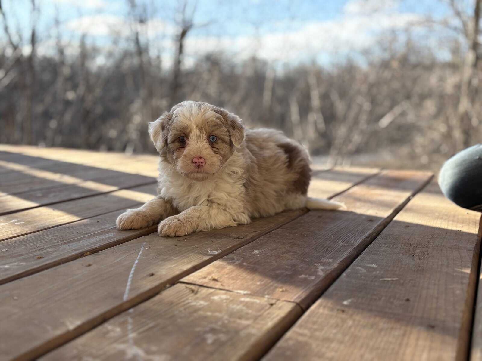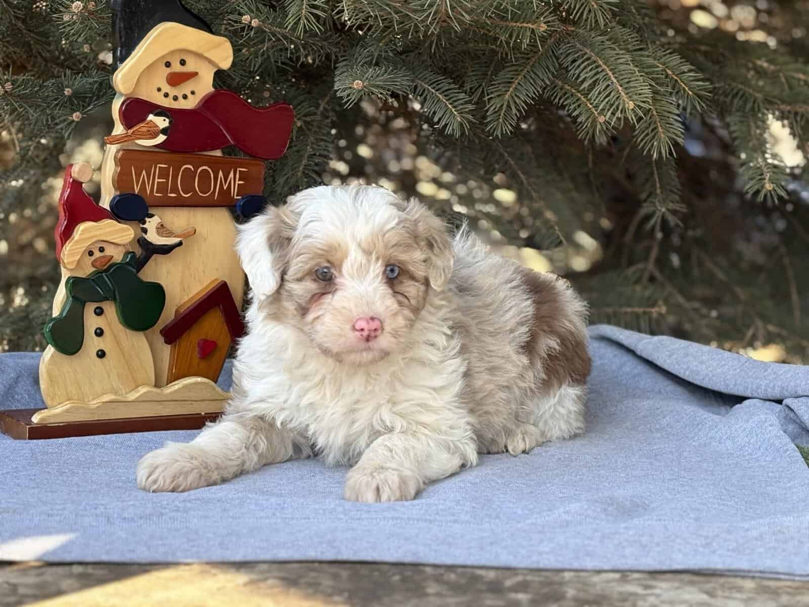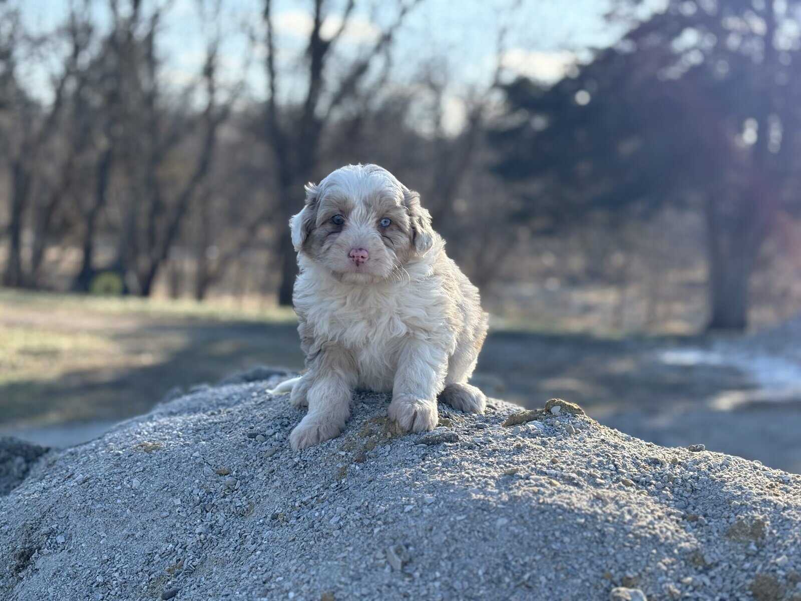 Mini Bordoodle puppies! Cute, cuddly and family friendly. These puppies are very adaptable and love everyone. There are 2 puppies available in this litter 1 male and 1 female. They are ready to go to their new homes anytime. The puppies are up to date on shots, deworming and vet check. There are some adorable rare colouring in this litter, as well as beautiful bright blue eyes. These are Mini Bordoodle puppies and are expected to be around 20-30lbs full grown. They are non-shedding and hypoallergenic.