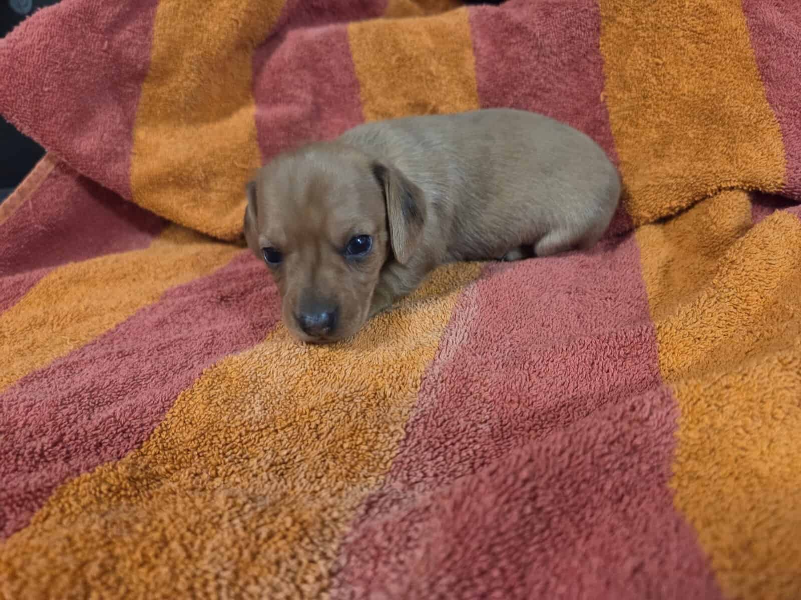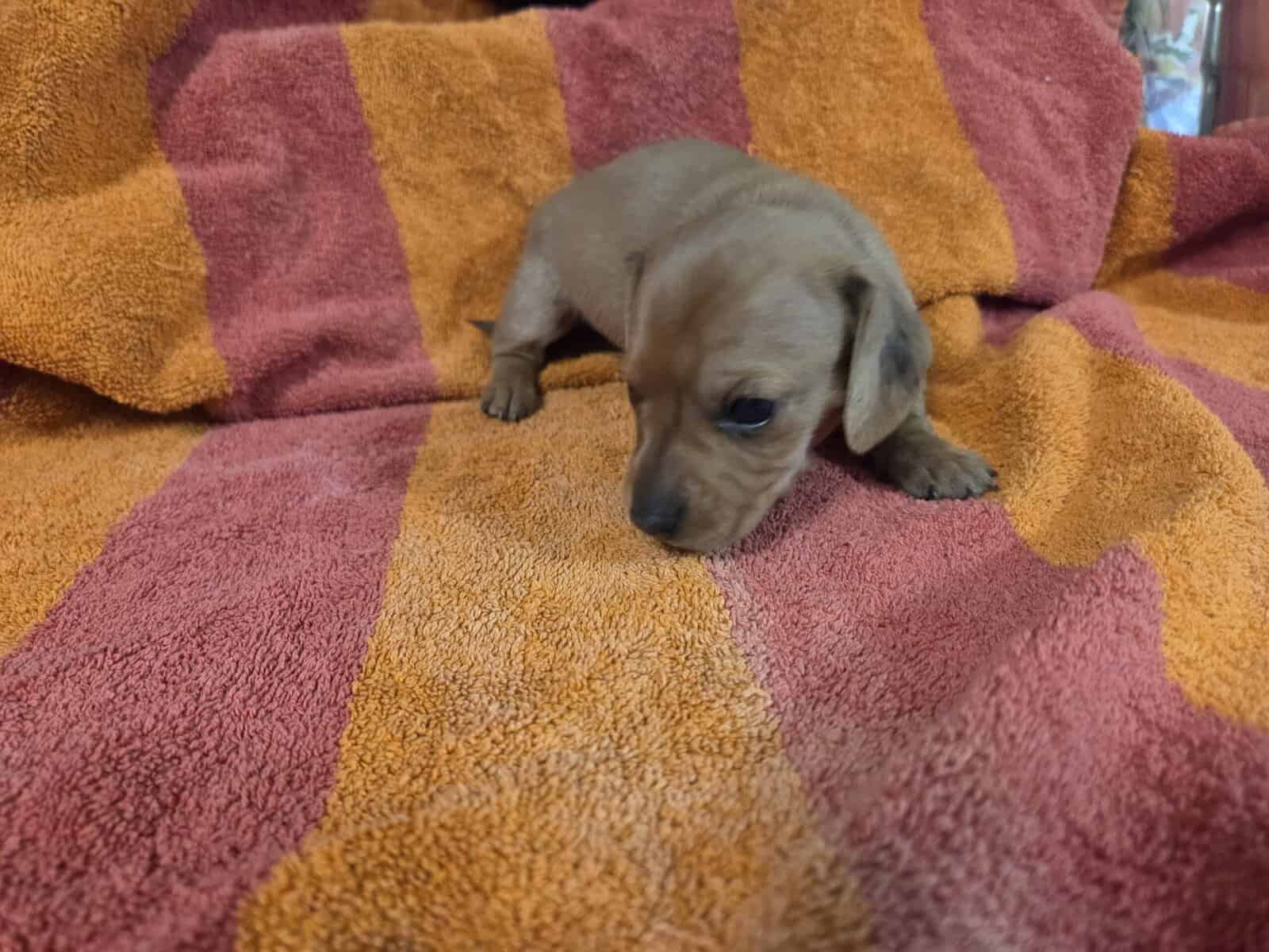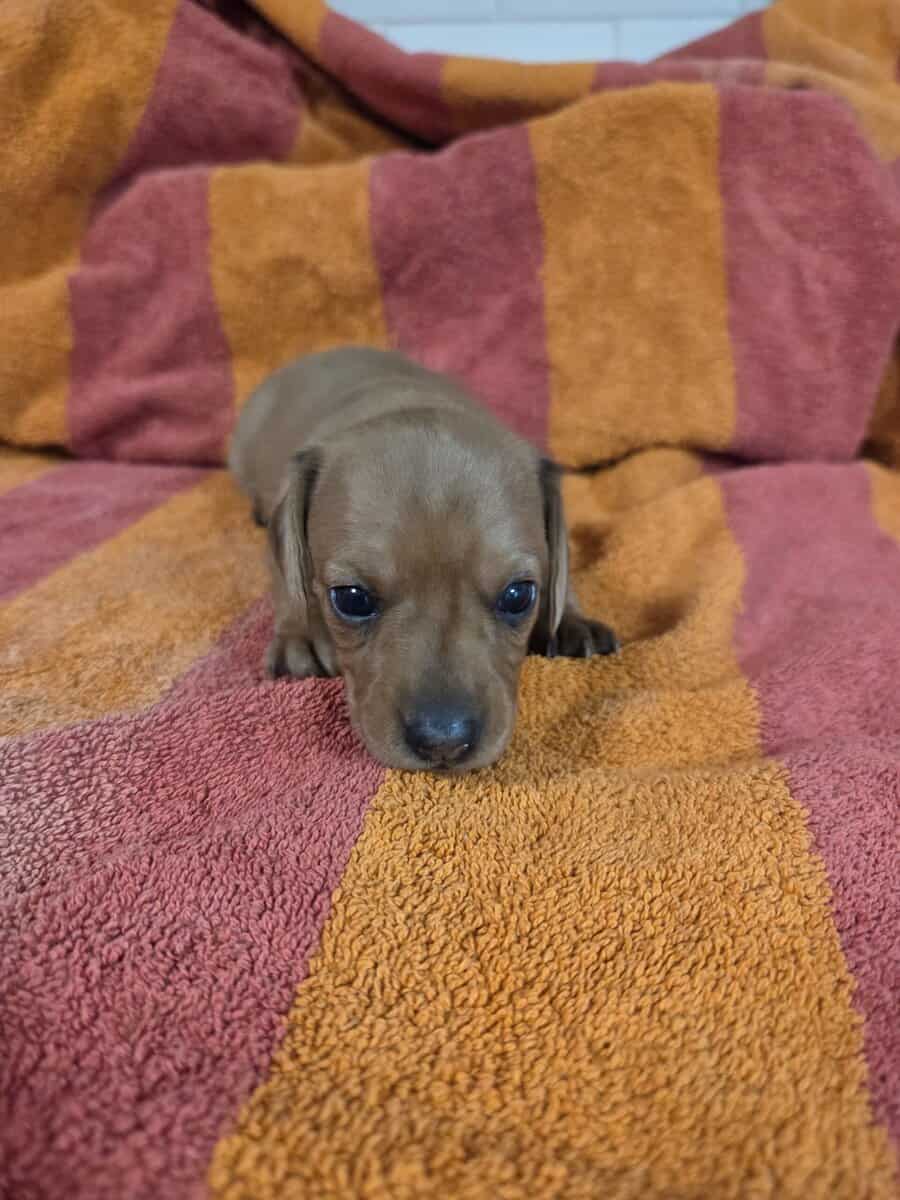 My name is Mini-Meena i am a Red hidden dapple short haired female. I was born on November 13. I will be Vet checked and have my first set of shots and have CKC and Vet paperwork when I go to my new home. I am ready to go to my new home now. If interested send a message to schedule a time to come see her. Start the new year with a puppy.