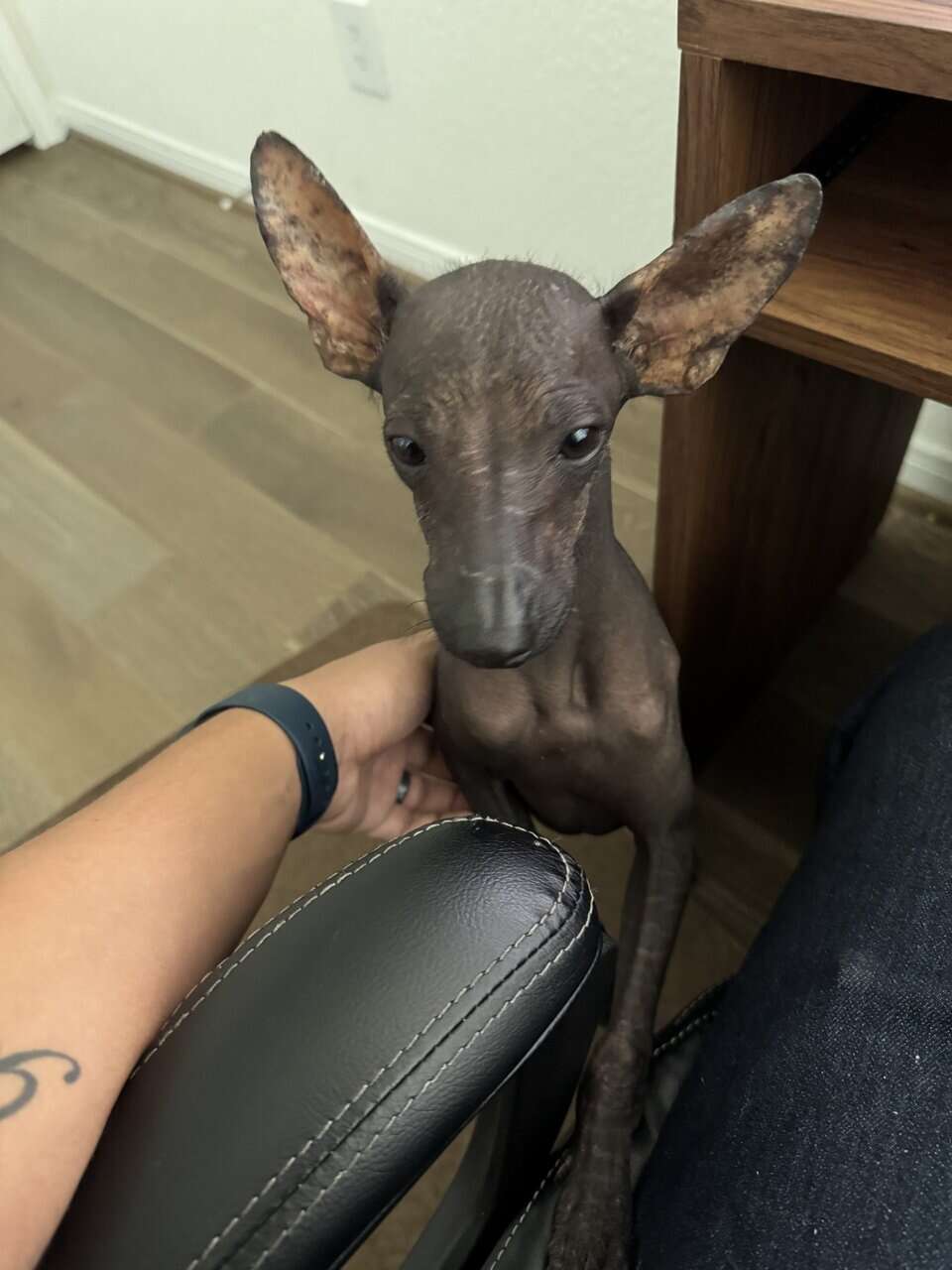 Mini xoloitzcuintli. Very energetic puppy, friendly great with kids.