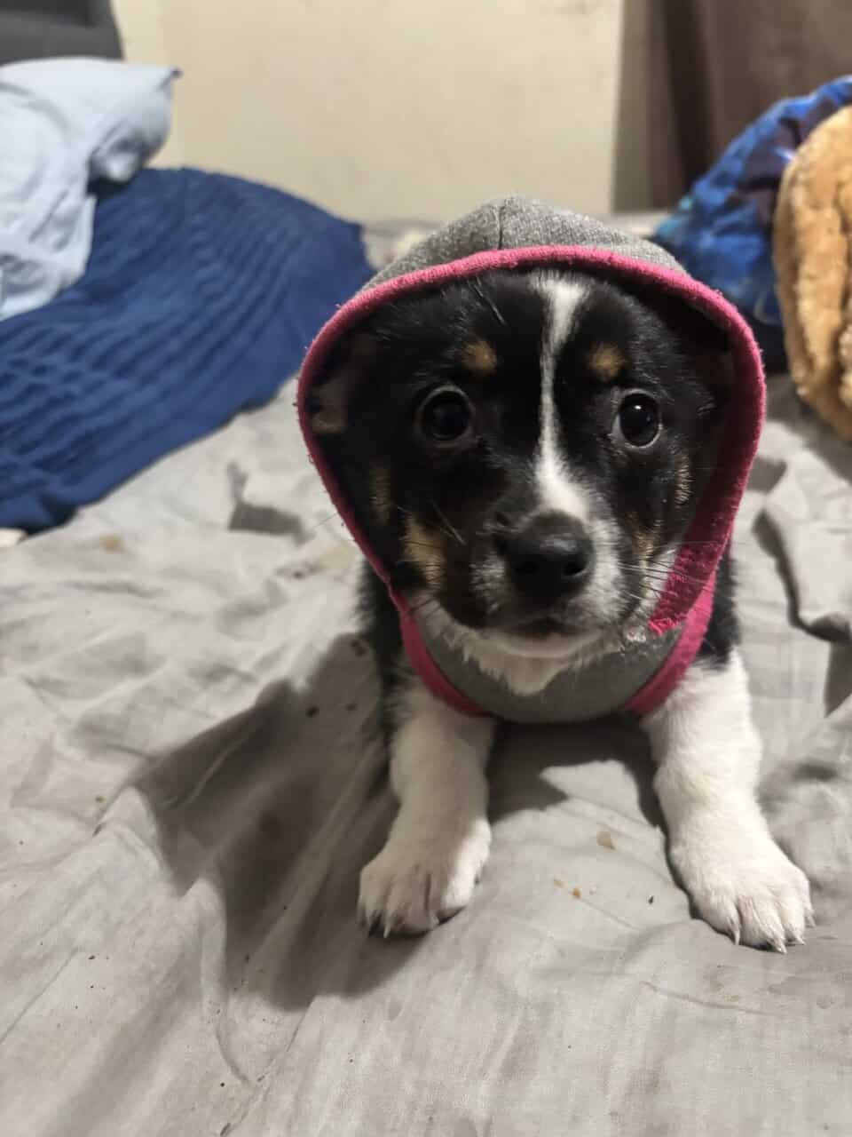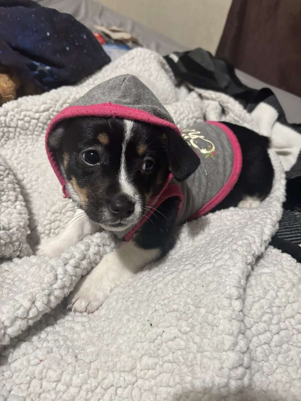 She is about 4-5 months old. Minnie was a rescue pup from a sweet lady that found her and couldn’t care for her. She does well with children. Minnie has been working on puppy pad training. She is crate trained. We are asking a rehoming fee to ensure a good home. She is a Corgi/Chihuahua mix. Minnie is the smaller dog in the pic with 2 dogs. She is almost the same size now as the other dog in the pic, just a little shorter. Minnie likes to go outside and run around, but likes to come back in and get lovings.
