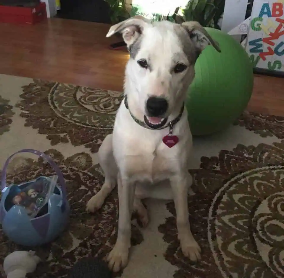 She weighs around 40 pounds & is around 5 years young & still acts like a puppy.