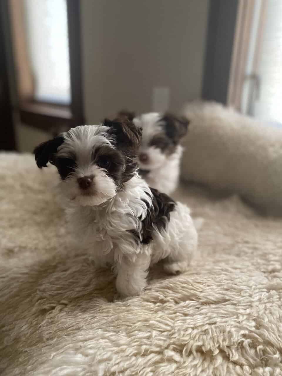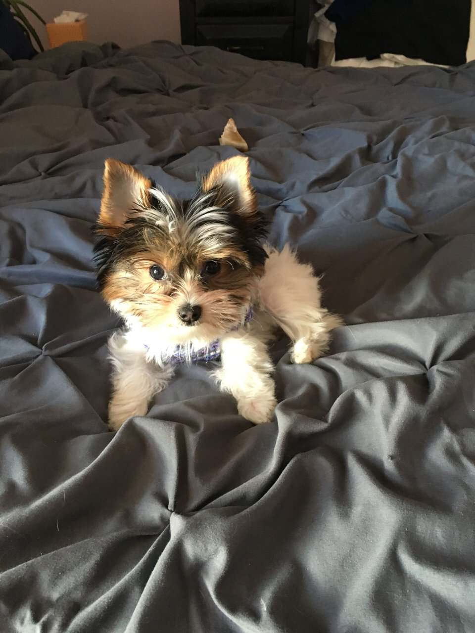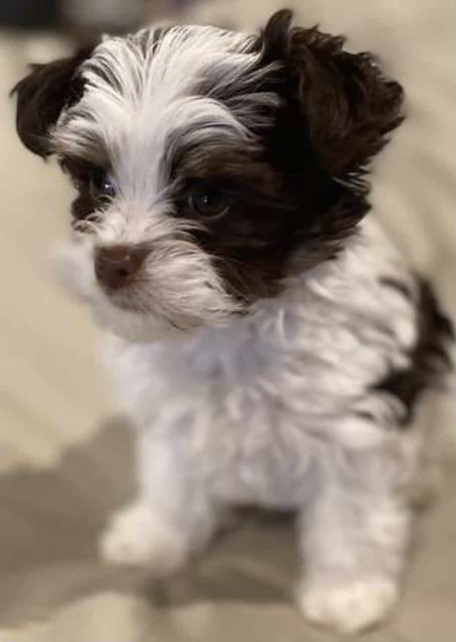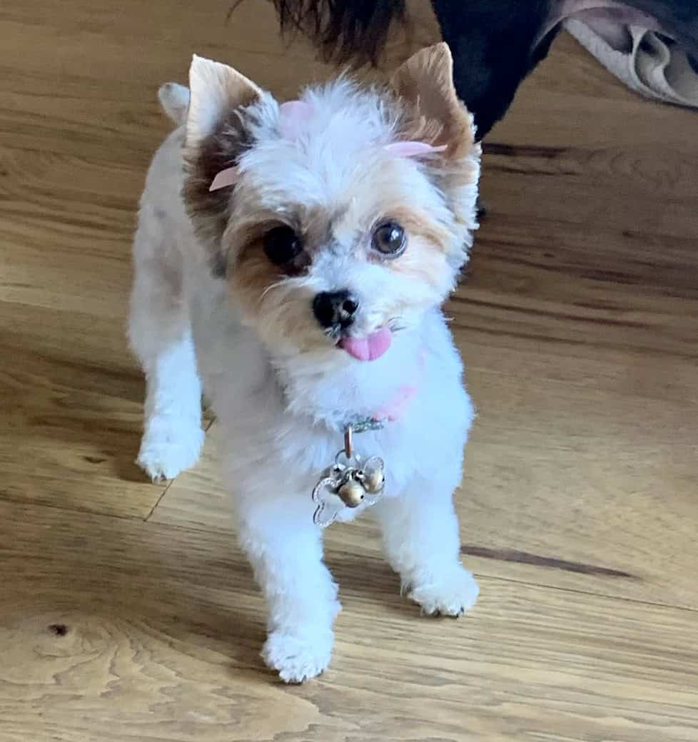 The mama (pictured) is a petite Parti Yorkie with soft, luxurious fur and the sweetest temperament. The papa is a tiny 2.5 lb traditional Yorkie carrying Parti genes. Together, they produce adorable, healthy, and well-rounded little babies.