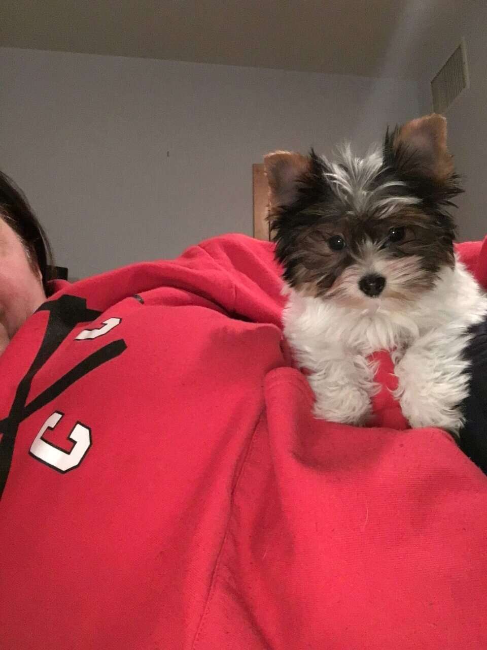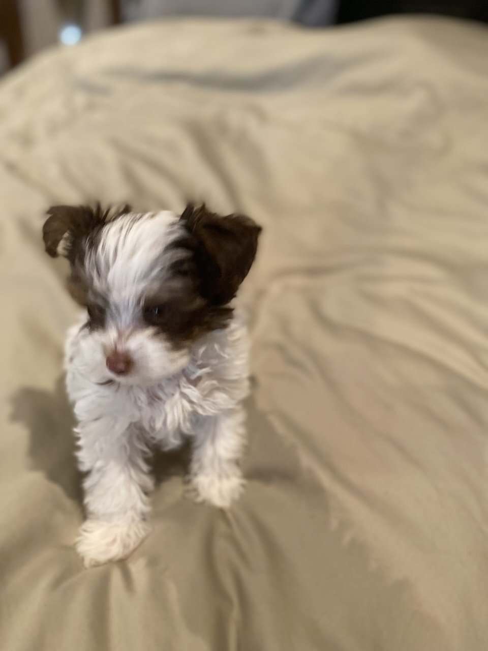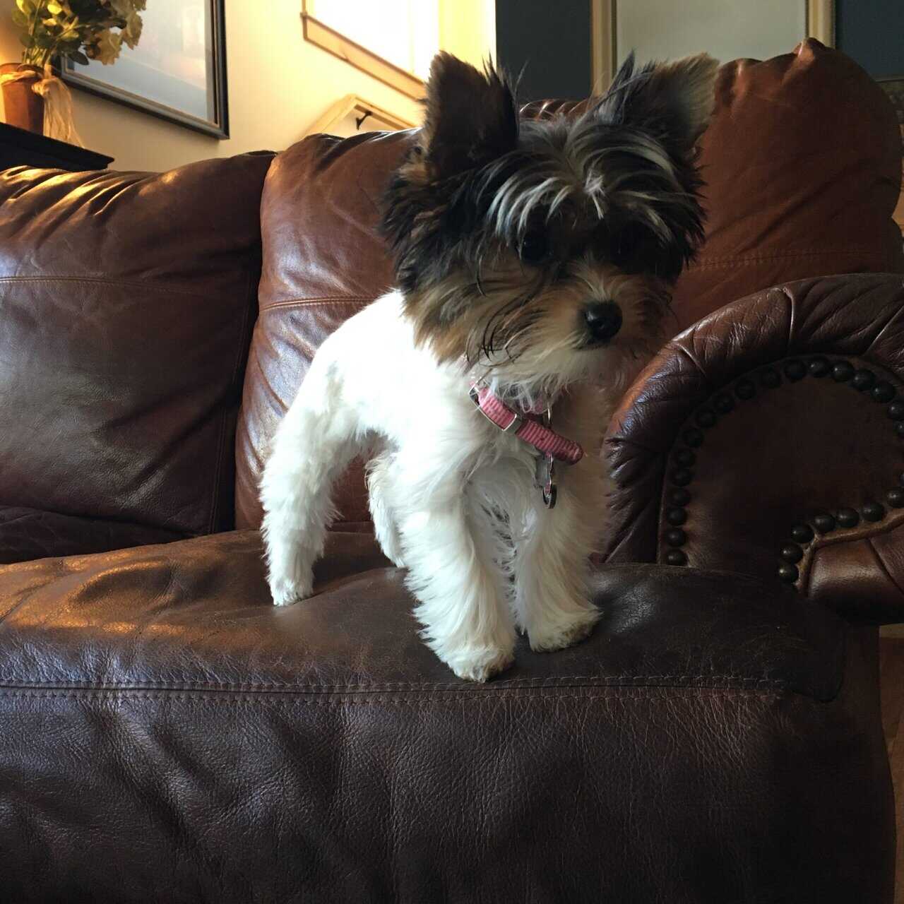 The mama (pictured) is a petite Parti Yorkie with soft, luxurious fur and the sweetest temperament. The papa is a tiny 2.5 lb traditional Yorkie carrying Parti genes. Together, they produce adorable, healthy, and well-rounded little babies.