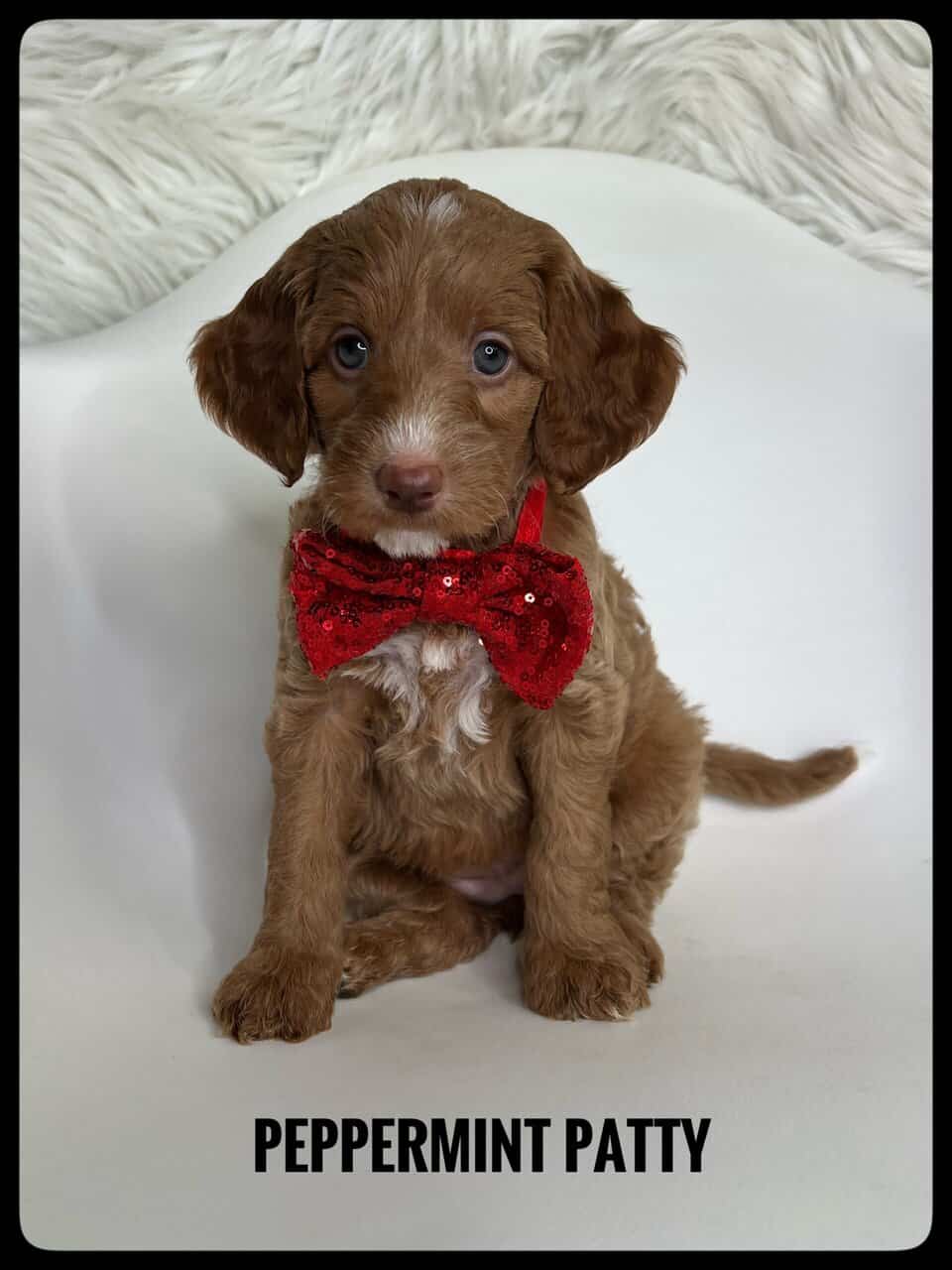 Meet Peppermint Patty, our adorable F1b Goldendoodle girl! 💜