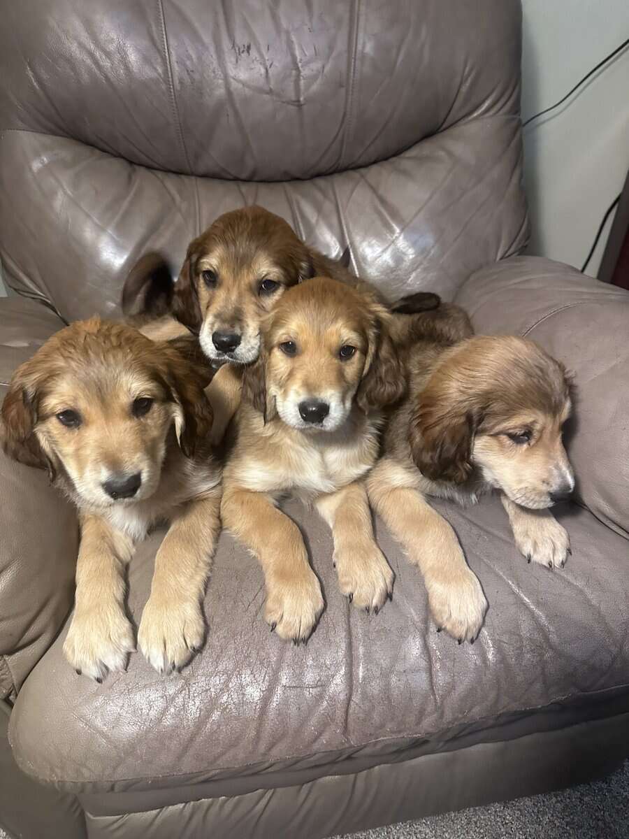 Daddy is registered Irish setter. Mama is a small framed Great Pyrenees. Daddy is fun and energetic. Never has a bad day! Mama is loyal and loving. Always ready to protect. Very family friendly! Our kids love them so much! Learning how to sit for petting and praise.