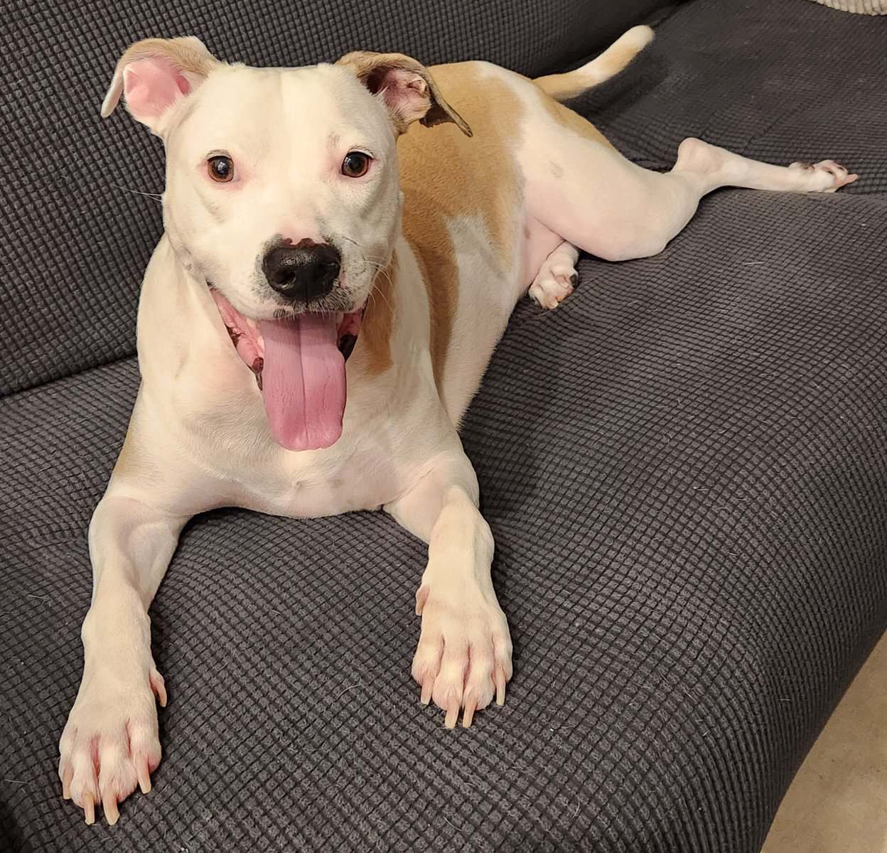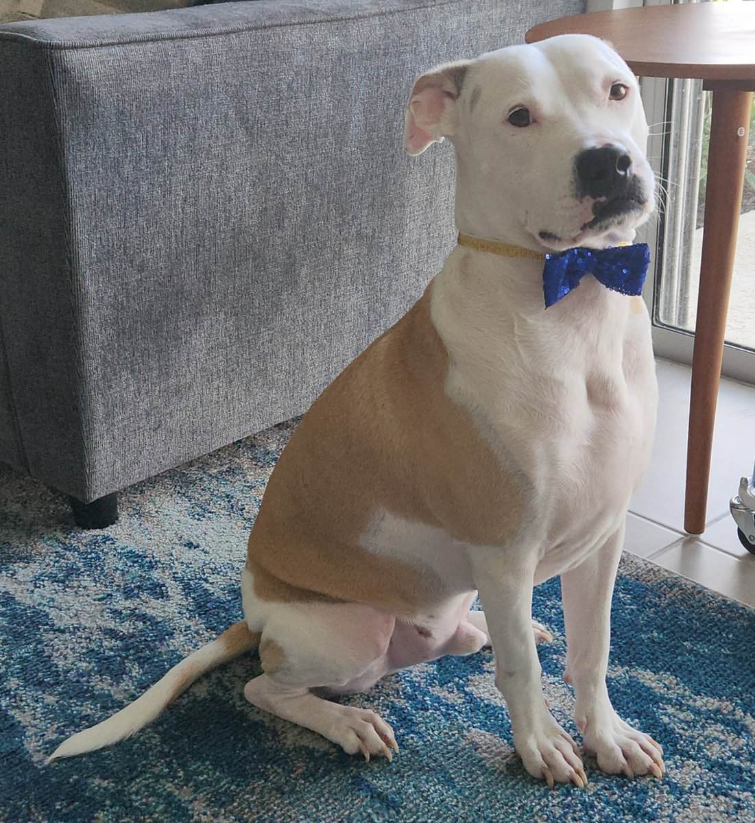 Hello everyone! I'm Clayton and I was adopted from the Sarasota Humane Society in Florida on 6/24/24. I was born 4/23 and I'm 50lb. A DNA swab said I'm 89% American Staffordshire Terrier and the rest Miniature Schnauzer. I don't have any genetic diseases. I have seasonal allergies so I take half an Apoquel everyday. I'm a friendly, sweet, and kind dog. My owner needs to rehome me because I shed, and she didn't think about how this would affect her nasal vasculitis autoimmune disease. I'm good with adults, children, and other dogs, housetrained, neutered, microchipped, I know how to walk on a leash, I'm not destructive, and I don't bark unless see a rabbit out the window. l Iove going on walks, to dog beaches, and spending time with the people that care about me. I'm looking for a wonderful home! The $250 fee is to help with some of the cost of my supplies. All of my supplies are yours for free.