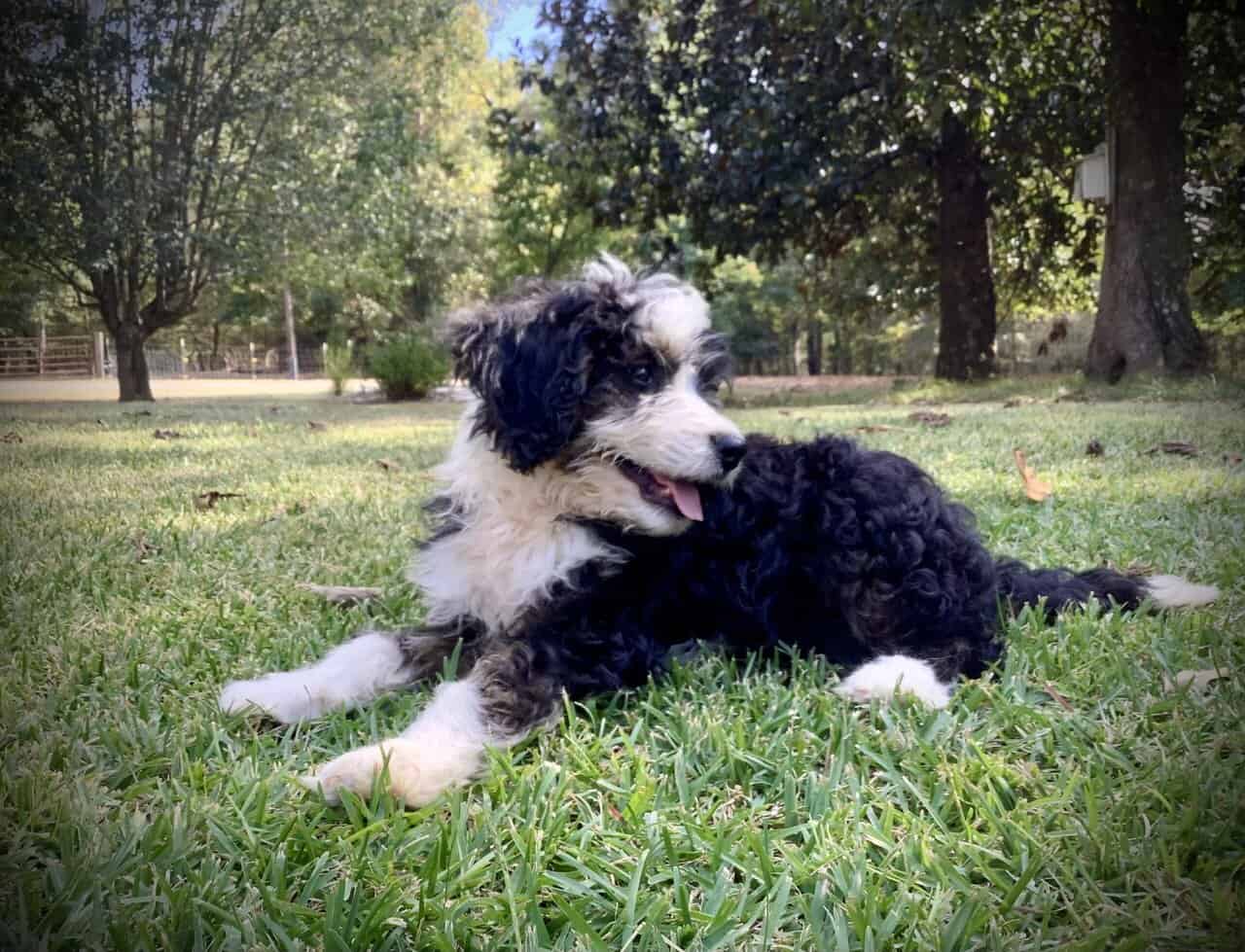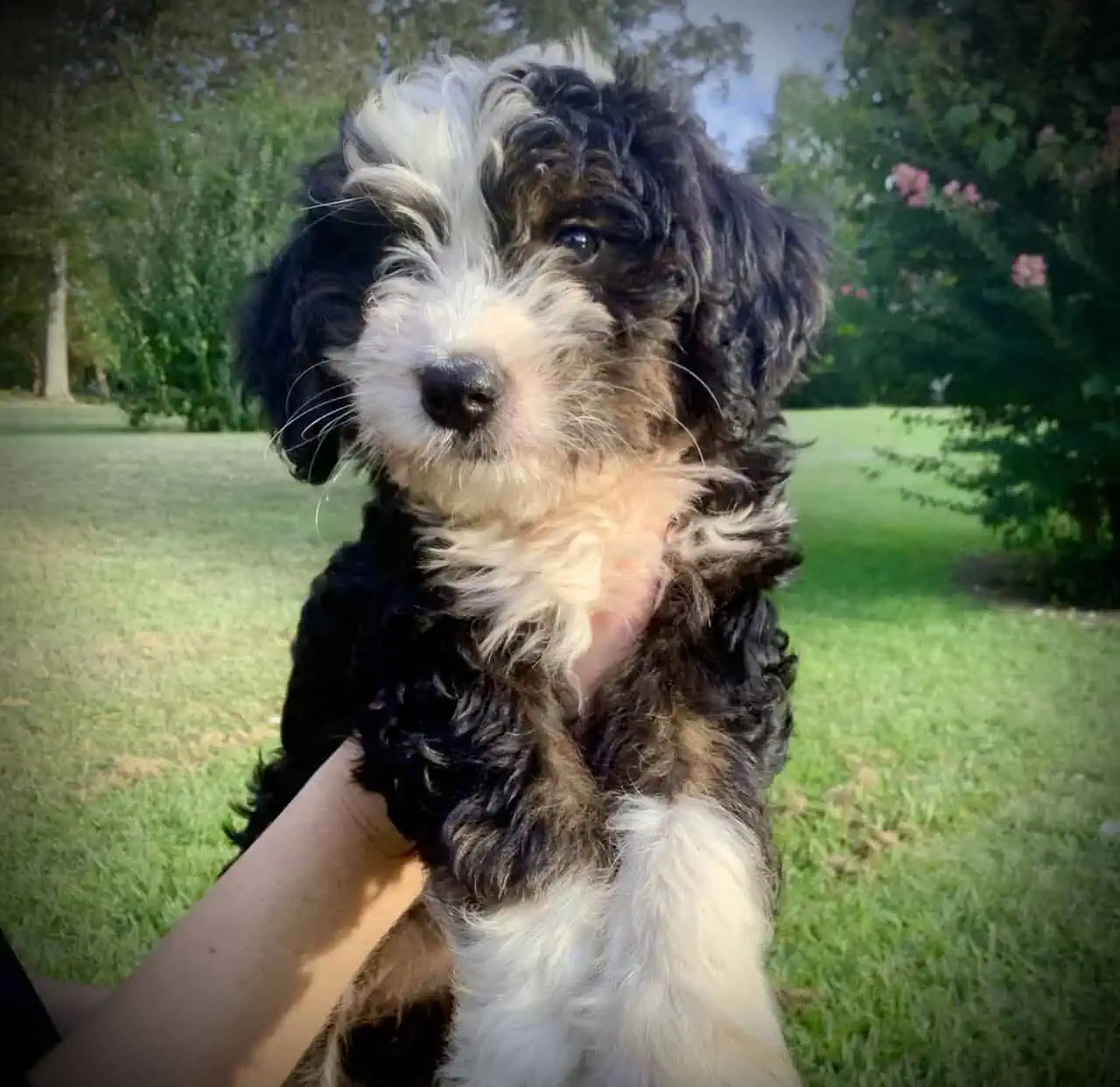 Lost Creek Farms Bernedoodle puppies available. The mother is our own full blooded Bernese and the father is Smith Lake Poodles “Reed”, a papered standard poodle. Four females and four males willl be ready for their forever homes end of August. These pups have been vet checked, used to being handled by children (my girls love these cuddle bugs), and have their first round of puppy vaccines. Anticipated adult weight should be between 60 and 80lbs. $300 deposit to hold a pup. Please reach out if you have any additional questions. Our featured puppy pictured here is Renee’.