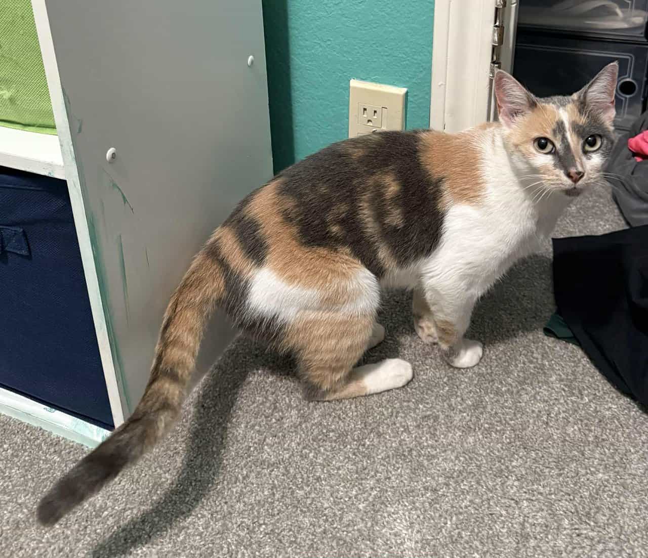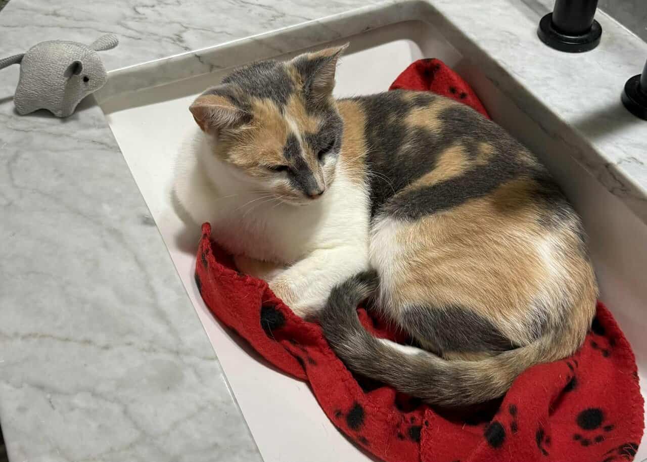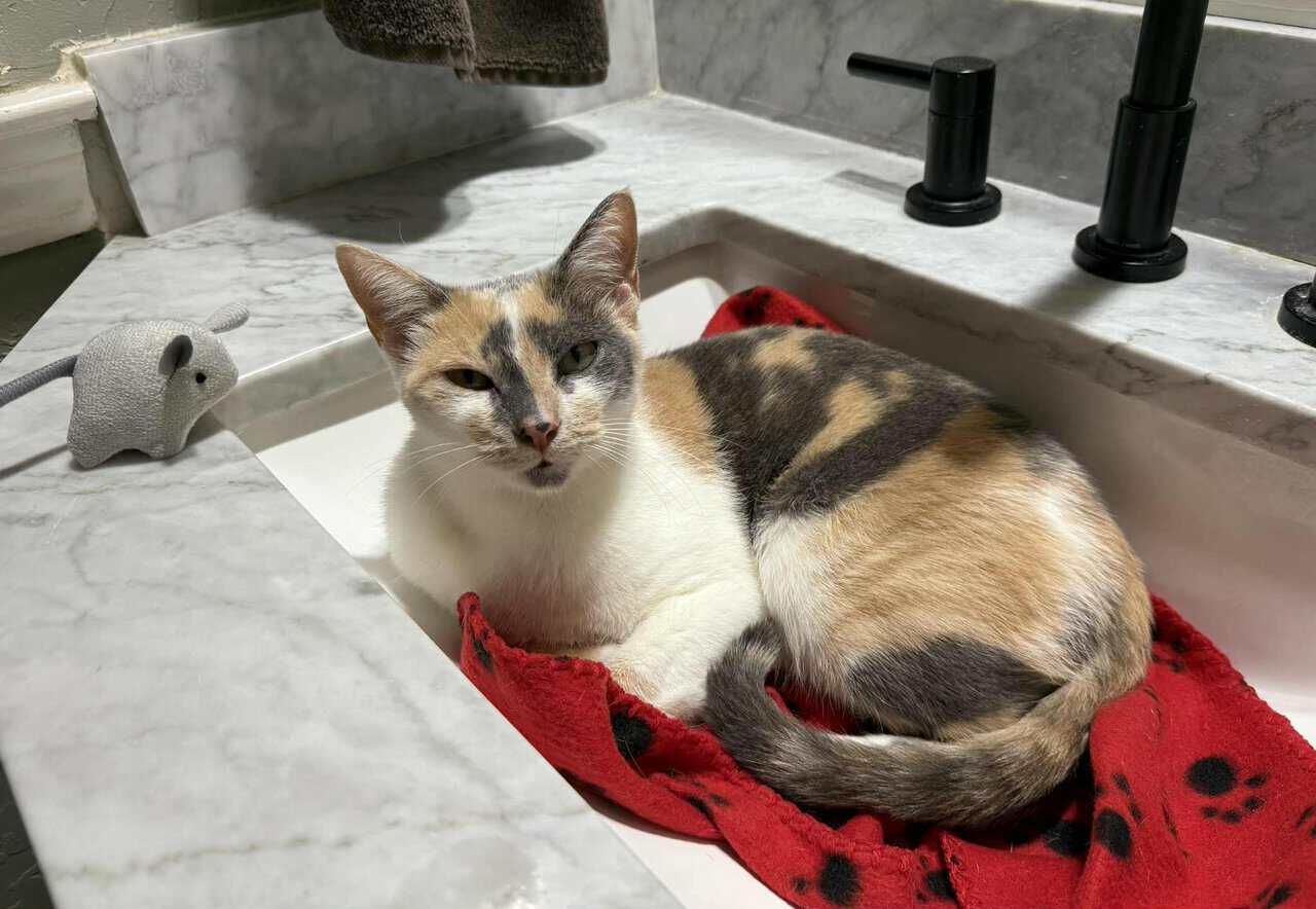 We are looking for a good home for this kitty we found on 9/3/25 off of I-20/Park Springs in Arlington, TX. Female dilute calico. Approx 2 years old. Has been spayed and is up to date on vaccines and tests. She is good around dogs and kids.