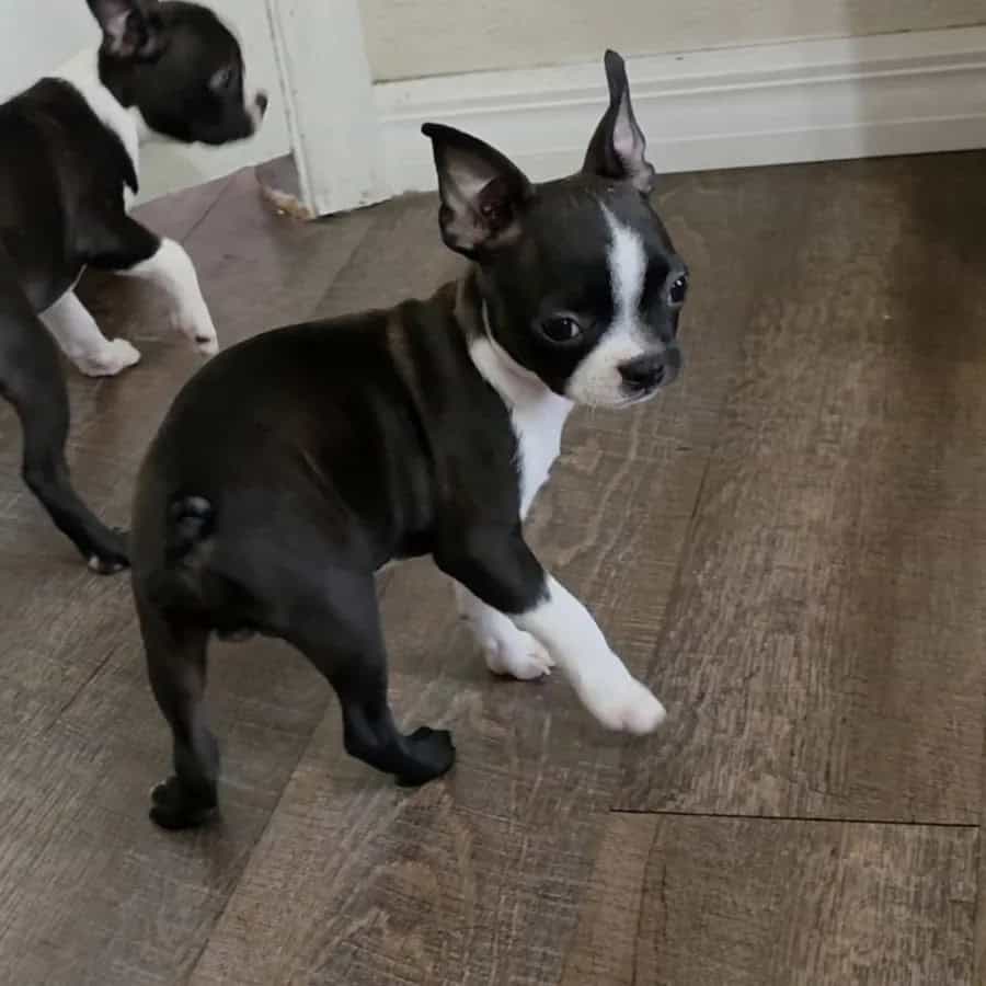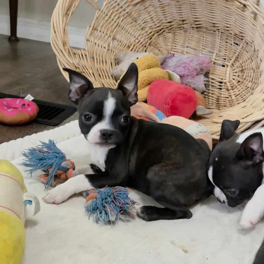 Roscoe, the Boston Terrier puppy, is a bundle of charm and affection. His curious eyes shine with intelligence, and his playful spirit brings smiles to everyone he meets. Whether he’s bouncing around with excitement or snuggling close for comfort, Roscoe’s loving nature makes him an irresistible companion, ready to fill any home with laughter and joy.