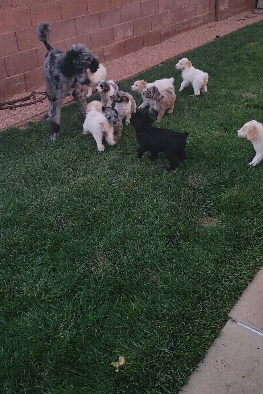 Standard Poodle puppies. Mom is AKC, that's my girl, and the Dad is papered but not AKC. However, he is DNA tested, 100% Standard Poodle. tails are docked, due claws and first shots done. they are healthy and will be 7 weeks on Friday. Boys and girls $1000.00 located in Hurricane Utah. All puppies come with a puppy go bag to their forever families. $500.00 non refundable deposit. 2 boys and 7 girls left. Will be 40 to 50 Pounds