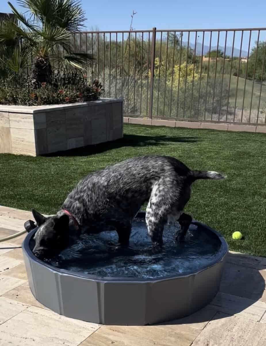 Bella is a slender 36 lbs and stands 21” at the shoulders. Not as energetic like you might expect for her breed, but does enjoy a good walk or run. When doing so, she really, really wants to be walking on the side of the road facing on-coming cars for some reason. She’s a bit timid on busy streets. And, after you take her on a specific route, she’ll lead the way the next time in case you forget :)