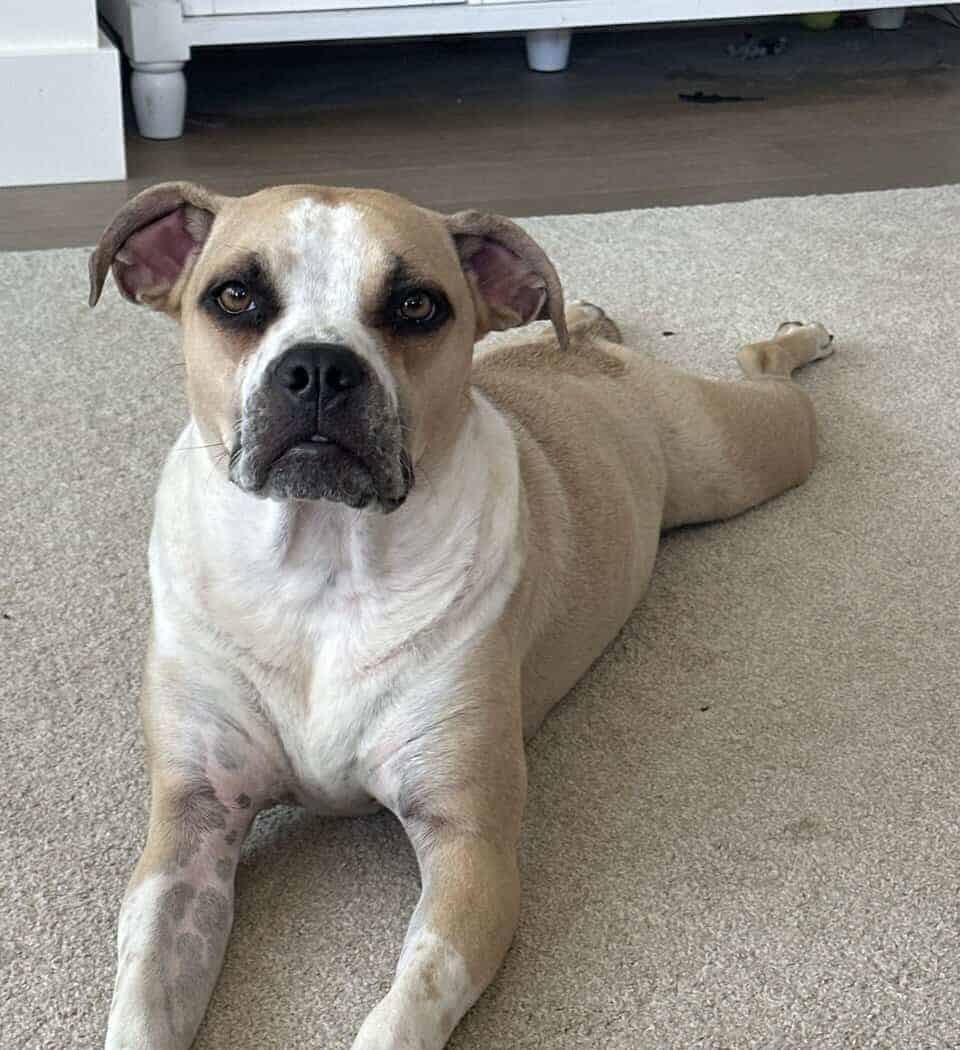 Sissy is very sweet! She is such a love. She loves everyone. She is a little over one year old. She loves to give kisses and wants to always be around her people. She is potty trained and has all her shots. She loves to play. She is great with kids, and other dogs. She has never been around cats but I can imagine she would be great around cats. We will really miss her but we believe she would be happier with a family that can give her more attention. I did do a DNA test on her and she has Australian Shepherd, American Pit Bull, Bull dog. Pretty much all bully breeds.